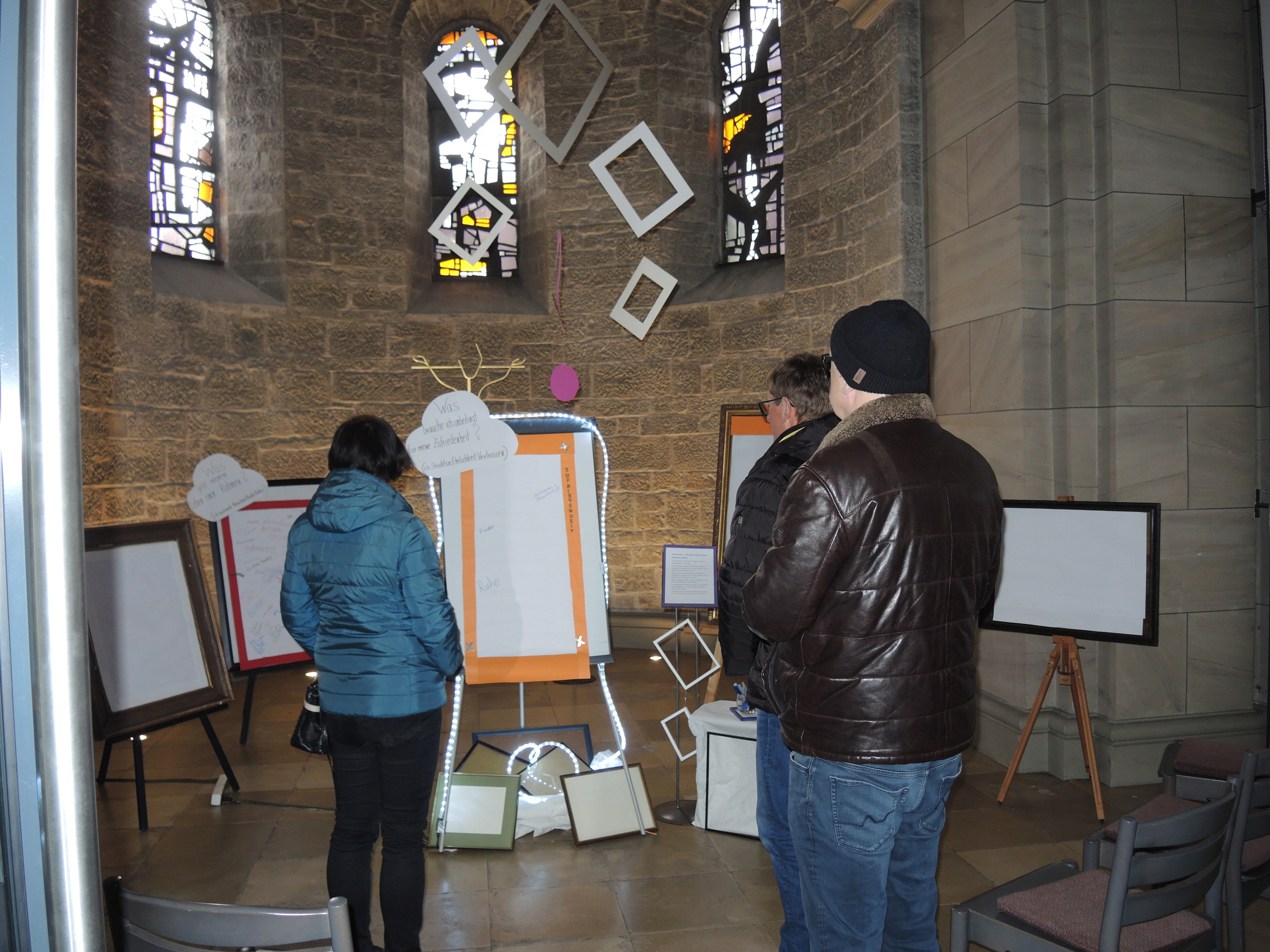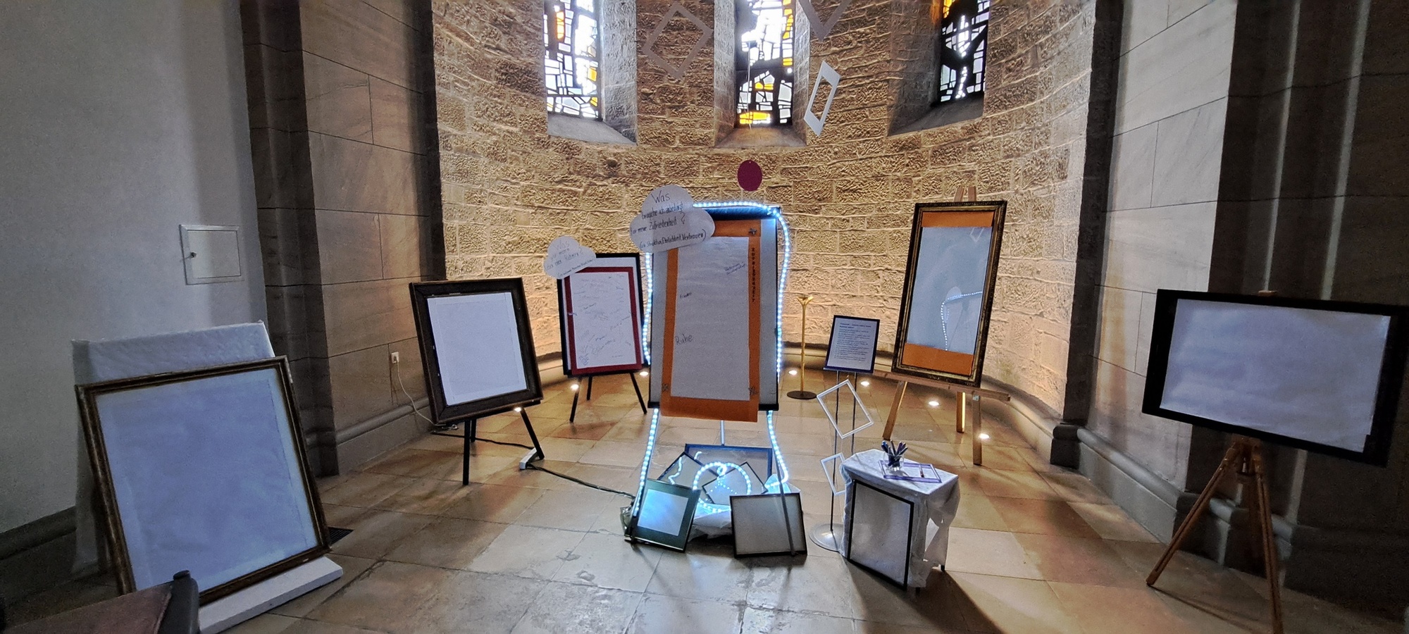 Auf der Staffelei dürfen Sie am jeweiligen Impuls gerne Ihre Gedanken aufschreiben.
