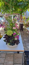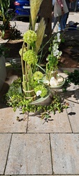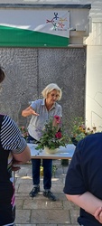 Der Vormittag stand im Zeichen der theoretischen Grundlagen: Welche Pflanzen eignen sich, wie werden sie im Gesteck angeordnet, was ist beim Standort – Hauptaltar, Seitenaltar oder Kirchenraum – zu beachten? Auch ästhetische Fragen wie Farbkombinationen, Proportionen und die Wirkung aus verschiedenen Blickwinkeln wurden behandelt.