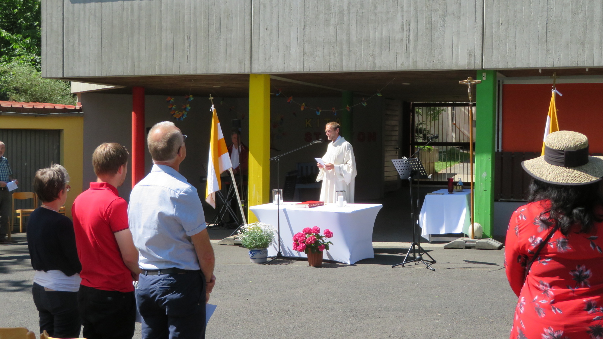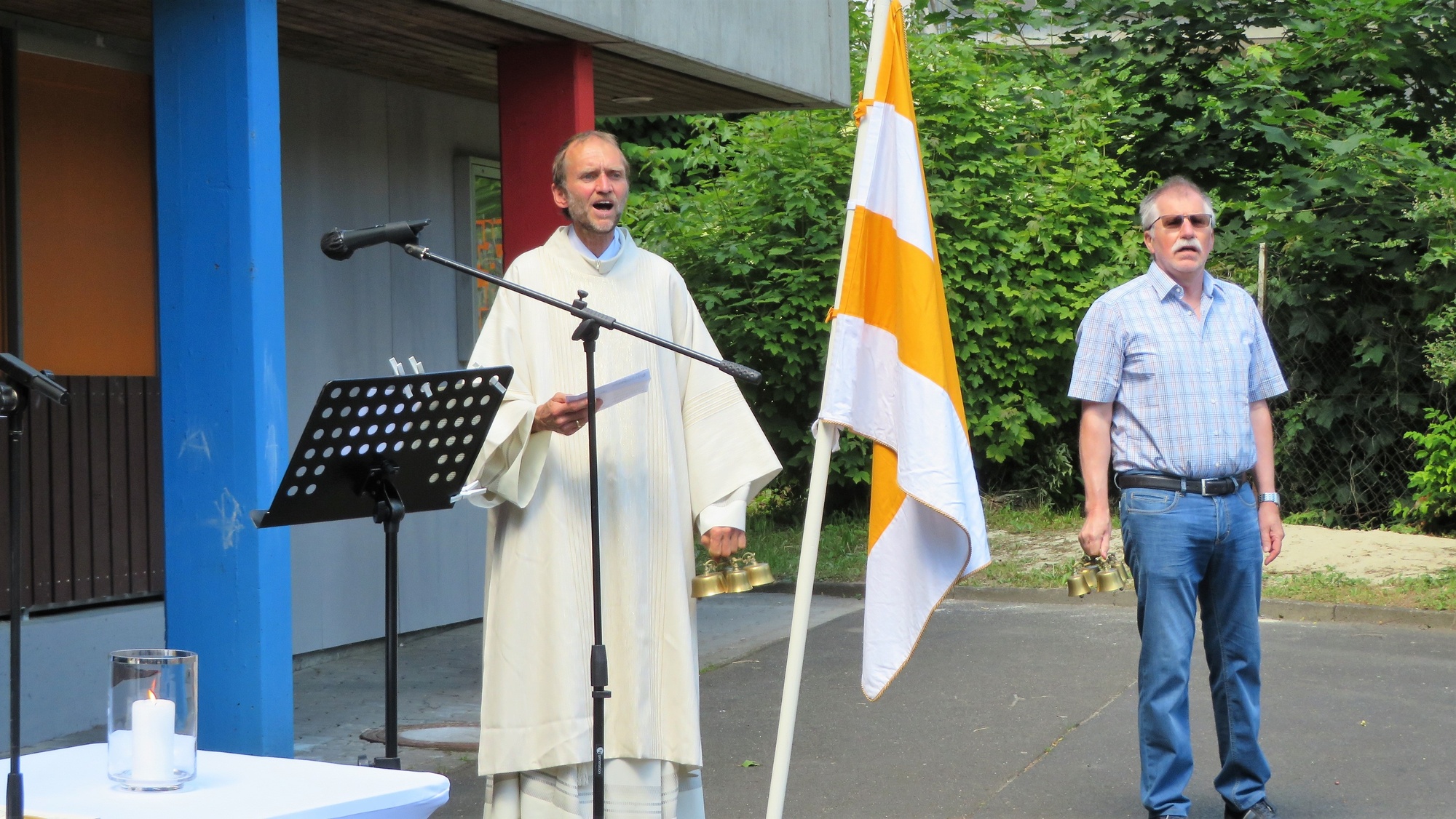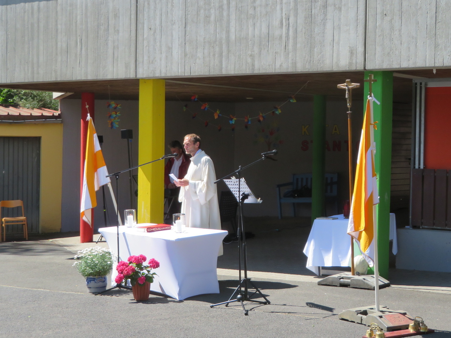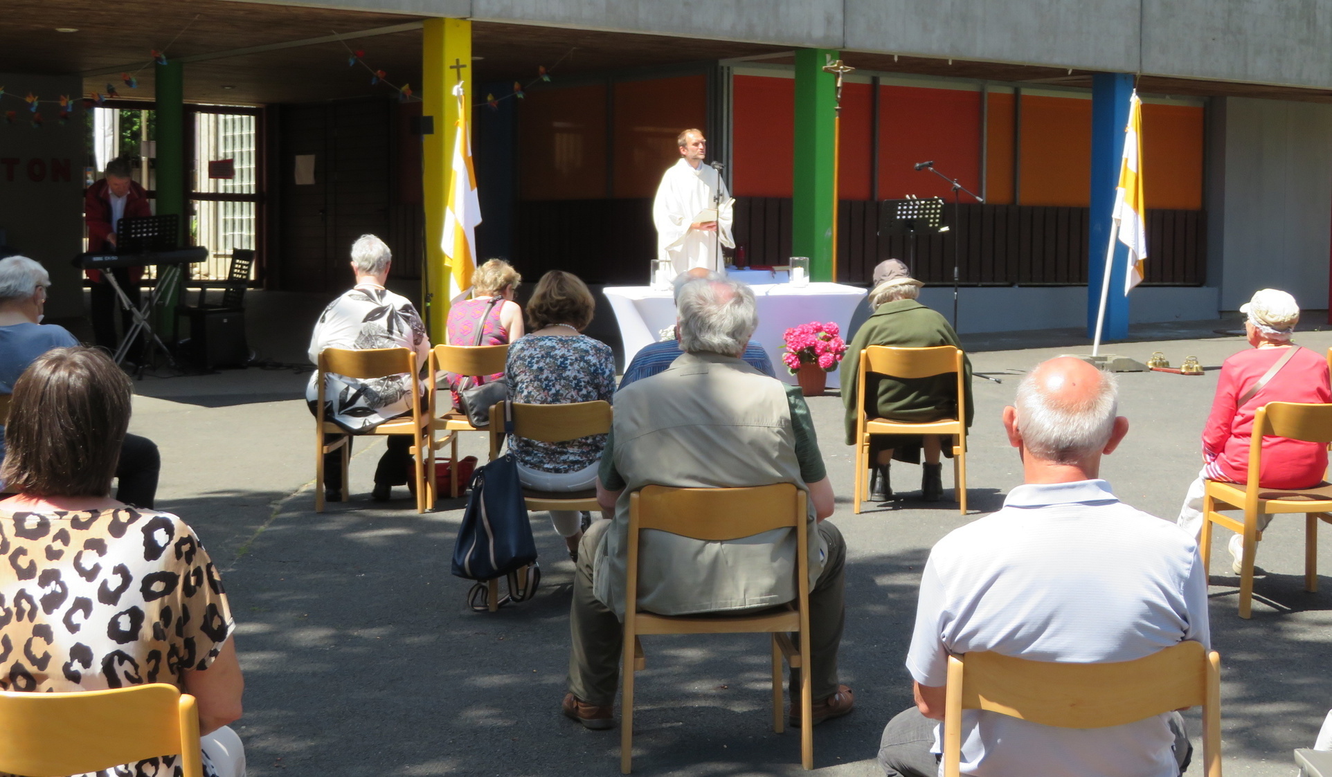 Merklich erleichtert und sicher fühlten sich alle unter freiem Himmel: ohne Masken, mit deutlich hörbarem Gesang und der Möglichkeit, in Andacht und Ruhe den Gebeten,Impulsen und Liedern zuzuhören. Wie kann Antonius, der allseits bekannte Schlamperpatron, bei Suchen und Fragen helfen? Das war die Leitfrage des Gottesdienstes. Vor allem, wenn es um die tiefere Suche nach Sinn und Lebensweg, nach Lösungen und Antworten auf die Fragen de Lebens geht.