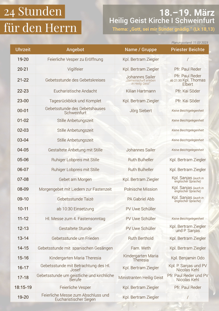 Beichtgelegenheit (in verschiedenen Sprachen)