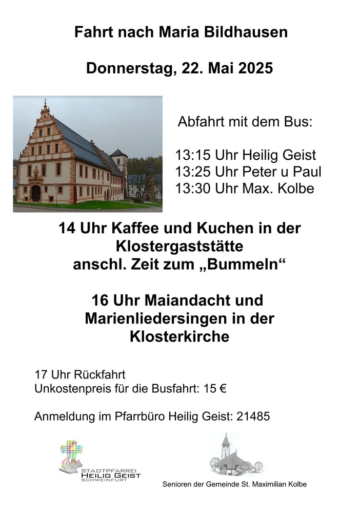 16 Uhr Maiandacht und Marienliedersingen in der Klosterkirche