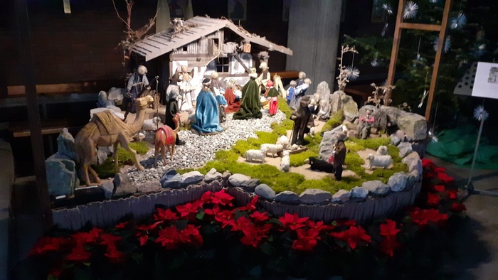Gestalten unterschiedlicher Hautfarbe, verschiedenen Alters und Herkunft aus aller Welt sind nach Bethlehem gekommen, weil sie das Kind begrüßen möchten. Für Maria und Josef, die Eltern Jesu, muss das mehr als eine Überforderung nach all den Strapazen der letzten Tage sein. Doch sie lassen es über sich ergehen, weil sie erkennen: Dieser merkwürdige Besuch vor der Stalltüre gilt nicht ihnen, sondern Jesus!