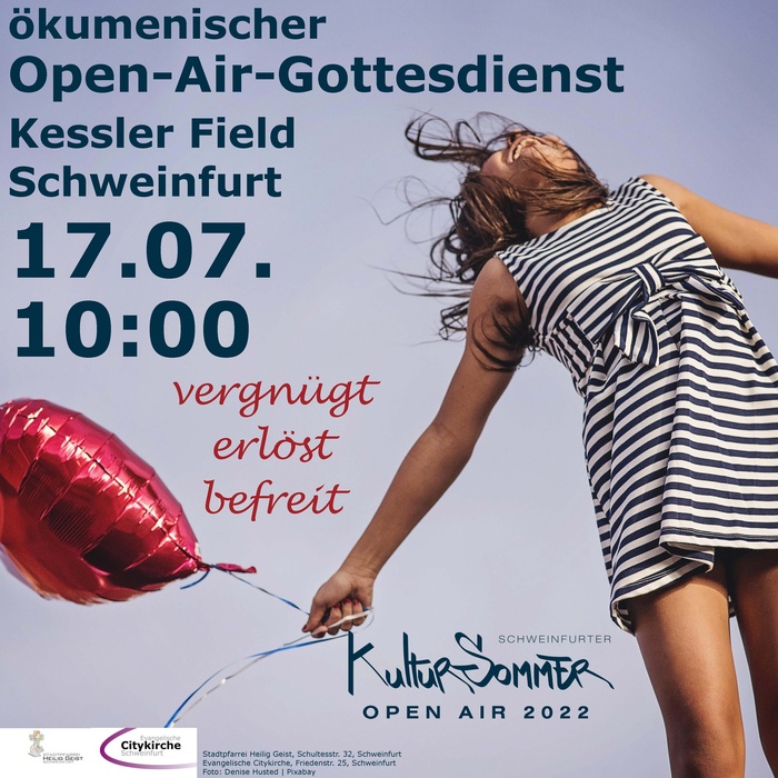 Im Rahmen des Schweinfurter Kultursommers laden katholische und evangelische Kirche gemeinsam dazu ein, unter freiem Himmel einen fröhlichen und befreienden Gottesdienst zu feiern.