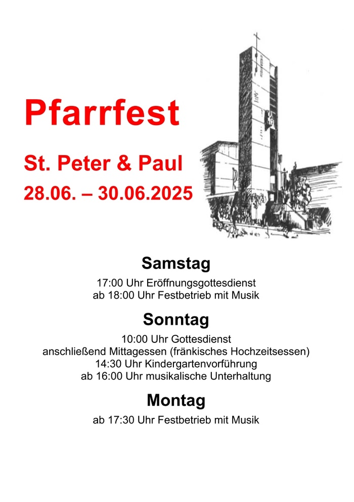 10:00 Uhr Gottesdienst, anschließend Mittagessen (fränkisches Hochzeitsessen)