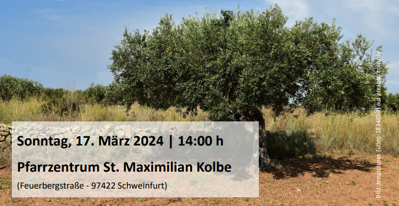 Eine Veranstaltung der Stadtpfarrei Heilig Geist Schweinfurt, der Gemeinde Maximilian Kolbe und in Kooperation mit der Katholischen Erwachsenenbildung Schweinfurt