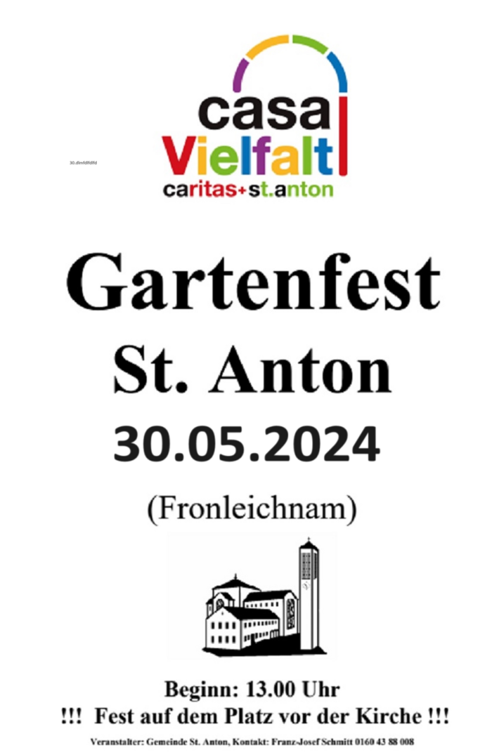 Fränkische Spezialitäten, ein reichhaltiges Kuchenangebot (bewährte selbstgebackene Vielfalt), Getränke, Spielmöglichkeiten für Kinder, Geselligkeit und ein interessantes Ambiente (barrierefrei) sind vorbereitet und laden Menschen alles Alters ein, diesen „doppelten“ Festtag für die Stadtkirche Schweinfurt gemeinsam in St. Anton zu feiern, bzw. ausklingen zu lassen. Beginn: 13.00 Uhr.