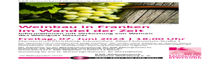 Die KAB lädt recht herzlich zu einer Weinprobe des Weingutes Gessner mit Brotzeit ein.
