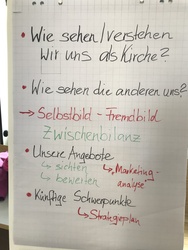 Zu Beginn wurden Schwierigkeiten und Probleme der Kirchengemeinden und der Stadtteile diskutiert. Meist erfolgt die Sicht aus dem Inneren heraus, aus Sicht der Gemeindemitglieder, wie sie ihre eigene Gemeinde sehen.