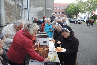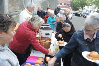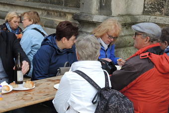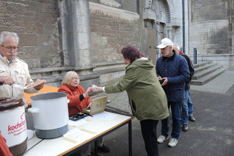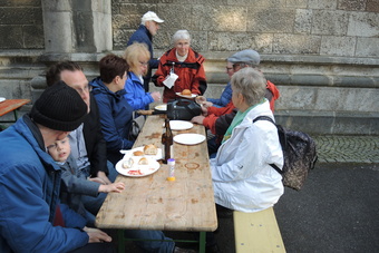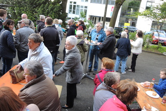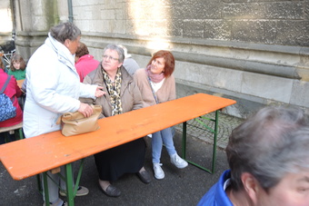 Nach dieser seelischen Nahrung durfte auch der Körper noch beim Empfang vor der Kirche gestärkt werden. Tatkräftig waren hier Vertreter/innen des Pfarrgemeinderates der Pfarrei Heilig Geist Schweinfurt zugange und sie verdienen höchsten Dank für den Einsatz.