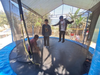 Ca. 40 Kinder habe ich Montags, Mittwochs und Freitags um 13.20 Uhr beim Treffpunkt vor dem Sportplatz in Esperanza Alta (Esperanza ist die Hoffnung) abgeholt. Im Gelände von LENTCH gabs dann etwas Zeit fürs Spielen - auf dem Sportplatz, Kinderspielplatz, Hüpfburg – dann erhielten sie das frisch zubereitete und köstliche Mittagessen. Anschließend in vier Gruppen aufgeteilt der Förderunterricht, Hausaufgabenbetreuung, Vertiefung von Themen – Mathematik für die Älteren. Danach haben wir sie wieder zum Treffpunkt gefahren. Von dort gingen sie zu Fuß nach Hause – einige mussten noch den öffentlichen Bus nehmen, damit sie in ihre sehr abgelegene Viertel gelangen.