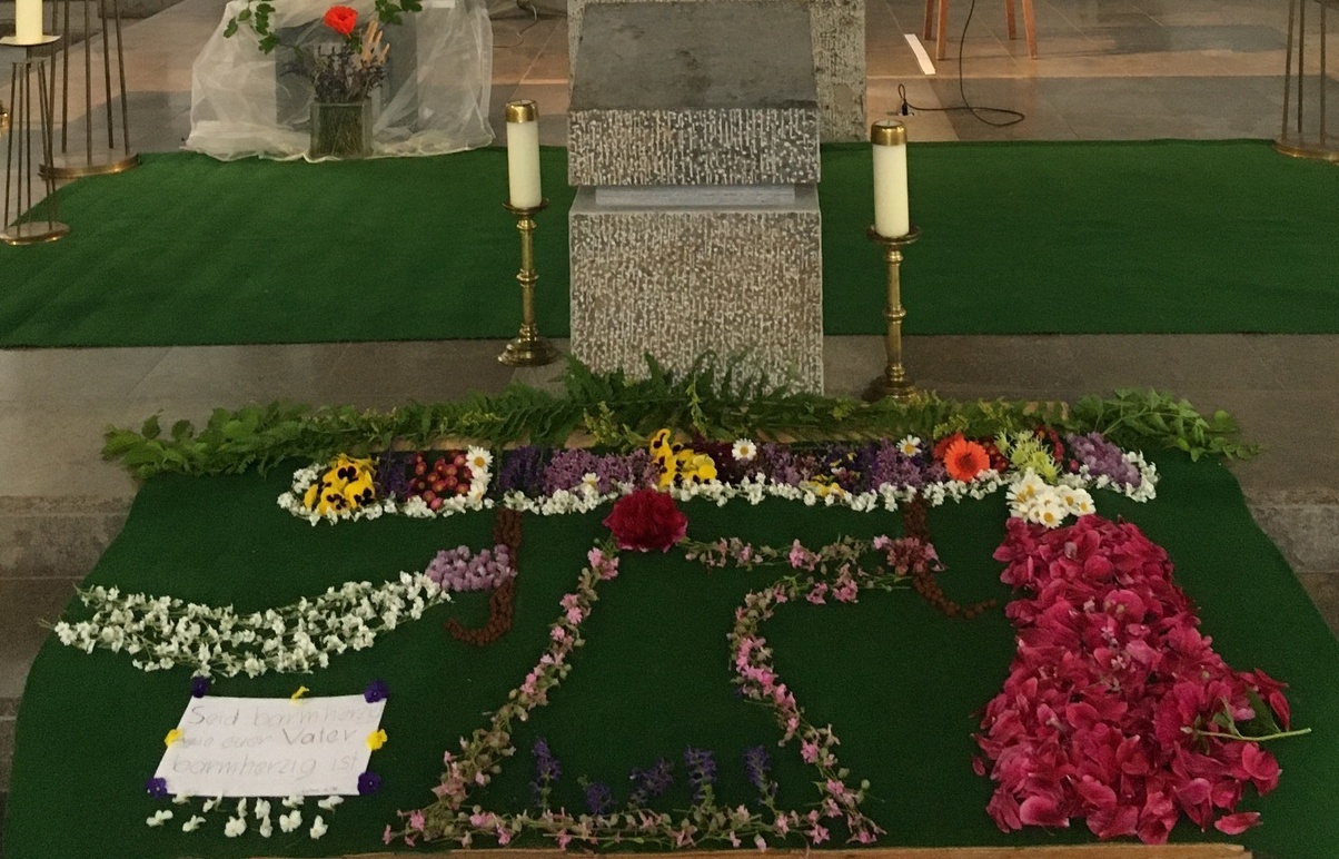 Entsprechend der Tradition feiert die Gemeinde St. Josef "Ihr" Fronleichnam am Sonntag nach Fronleichnam. Seit gut zwanzig Jahren gibt es außer der Prozession auch wieder einen Blumenteppich. Dieses Jahr Indoor in der Kirche statt Outdoor, anstelle des Pfarrfestes gibt es Bratwurst to Go.