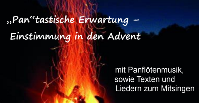 Am Beginn der Adventszeit als Zeit des Wartens und der Erwartung lädt dieser Abend dazu ein, im Zuhören und Mitsingen, seinen eigenen gedanklichen Weg für die Adventszeit zu finden. Können wir unseren Advent im Feuer der Hirten entdecken? Die Melodien und der Klang der Panflöte wird uns dabei unterstützen. Im Anschluss gibt es noch Glühwein und Gebäck, um die adventliche Gemeinschaft fortzusetzen.