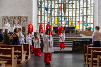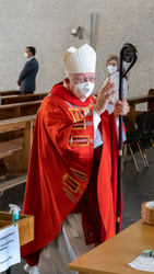 Unter den Klängen von Kantor Martin Seiwert traten die Jugendlichen vor den Weihbischof und empfingen von ihm das Sakrament der Firmung. Zum Schluss der Feier wünschte Weihbischof Ulrich den Neugefirmten, dass die heutige Feier weiterwirkt im persönlichen Leben jedes Einzelnen. Einen Tipp, wie das jede und jeder tun kann, gab er ihnen mit: „Lest das Evangelium, haltet Kontakt zu anderen Christen, feiert den Gottesdienst mit und habt fest im Herzen, dass Christus euch begleitet.“