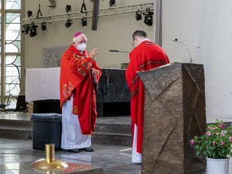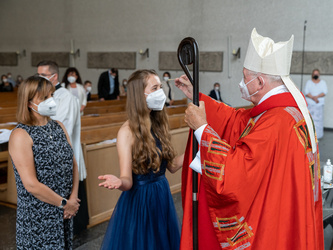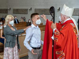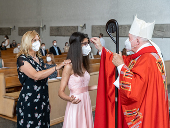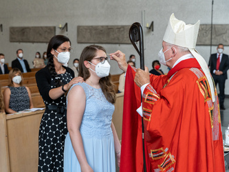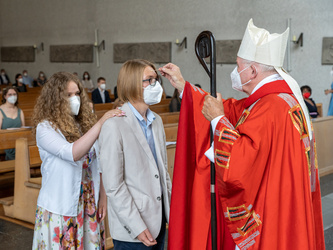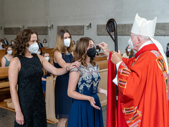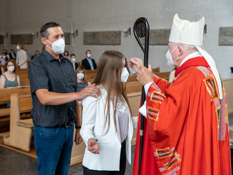 Der Weihbischof deutete in seiner Predigt die Salbung mit Chrisam als das Pluszeichen der Liebe Gottes, das ihnen auf die Stirn und ins Herz geschrieben wird. So ausgestattet können die jungen Christen bestärkt und zuversichtlich in die Zukunft gehen.
