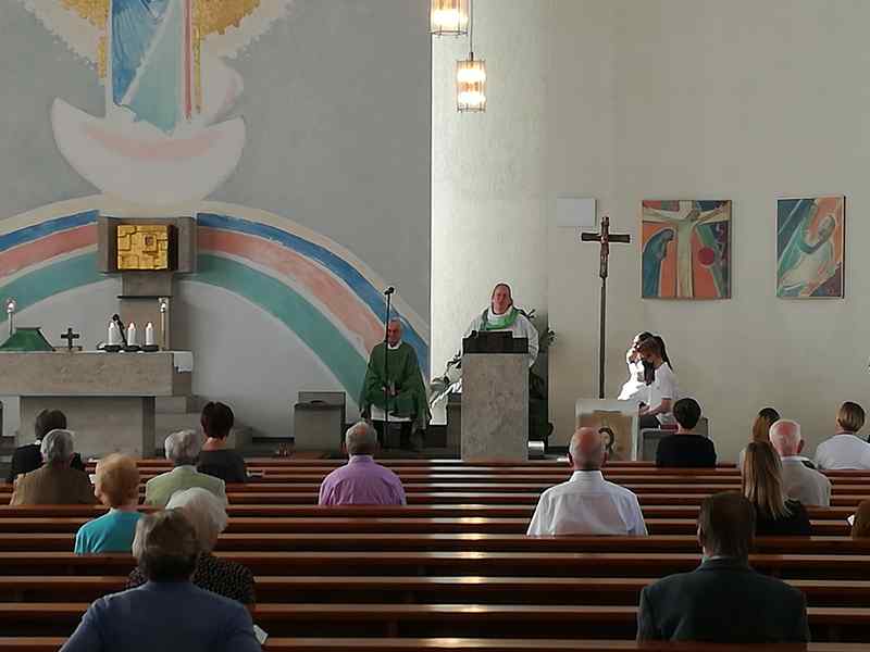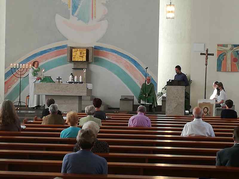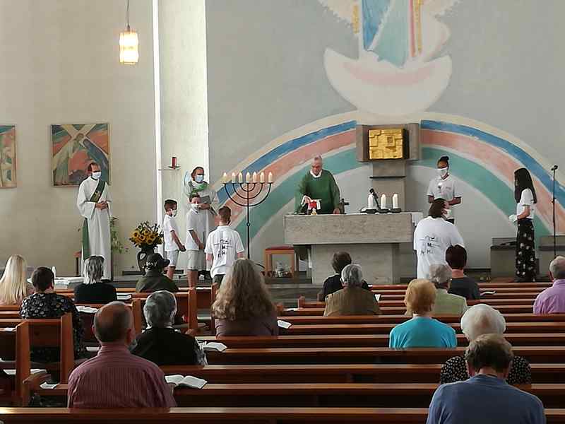 Herzlichen Dank gilt besonders den Mitgestaltermn des Gottesdienstes, der Schola und Herrn Sauer an der Orgel, die aus diesem coronabbedingt reduzierten Gottesdienst doch ein kleines Fest werden ließen.
