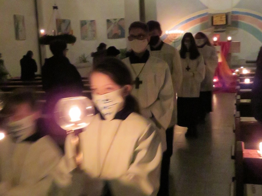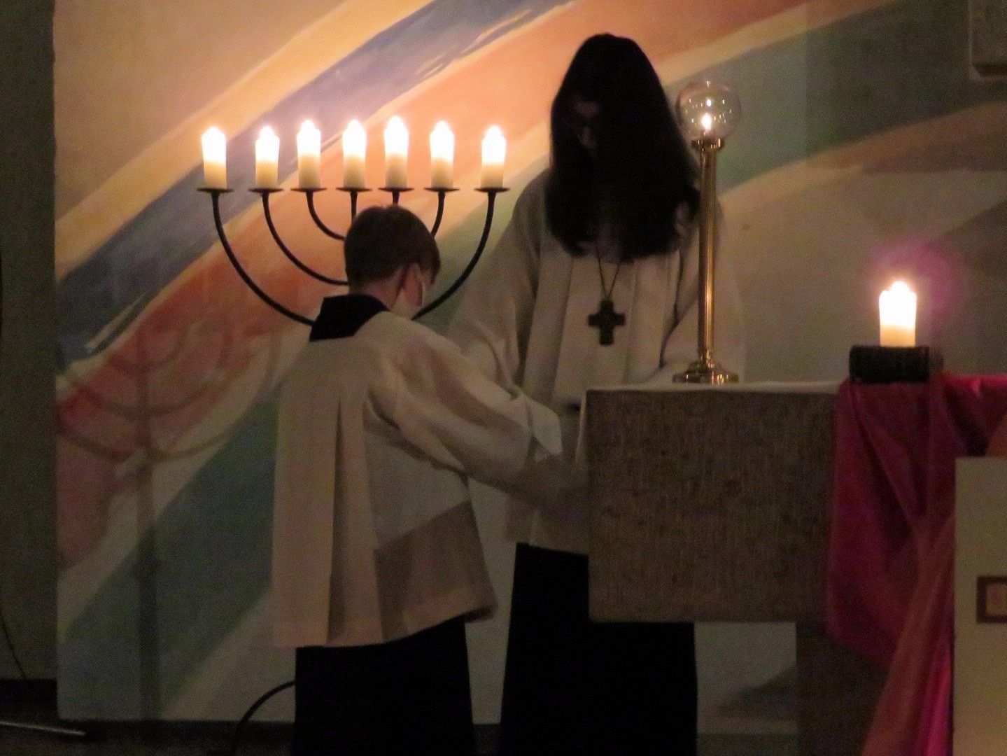 Die in der Taizé-Tradition wichtigen Momente der Stille boten den Teilnehmern Raum, auch viele persönliche Anliegen und Fragen unter das oft erwähnten Licht Gottes zu stellen. Fürbitten mit zahlreichen aktuellen Bezügen rundeten den Wortgottesdienst ab. Vor dem großen adventlichen Schlußssegen konnten erfreulicher Weise zwei neue Ministranten in Maria Hilf begrüßt werden: Viola Illig und Lorenz Heinelt machen sich nun auch mit auf den Weg, jeden Gottesdienst durch ihr Mittun Licht und Glanz zu verleihen. Ein herzliches Willkommen wurde ihnen und ihren Familien mit "warmen" Applaus signalisiert.