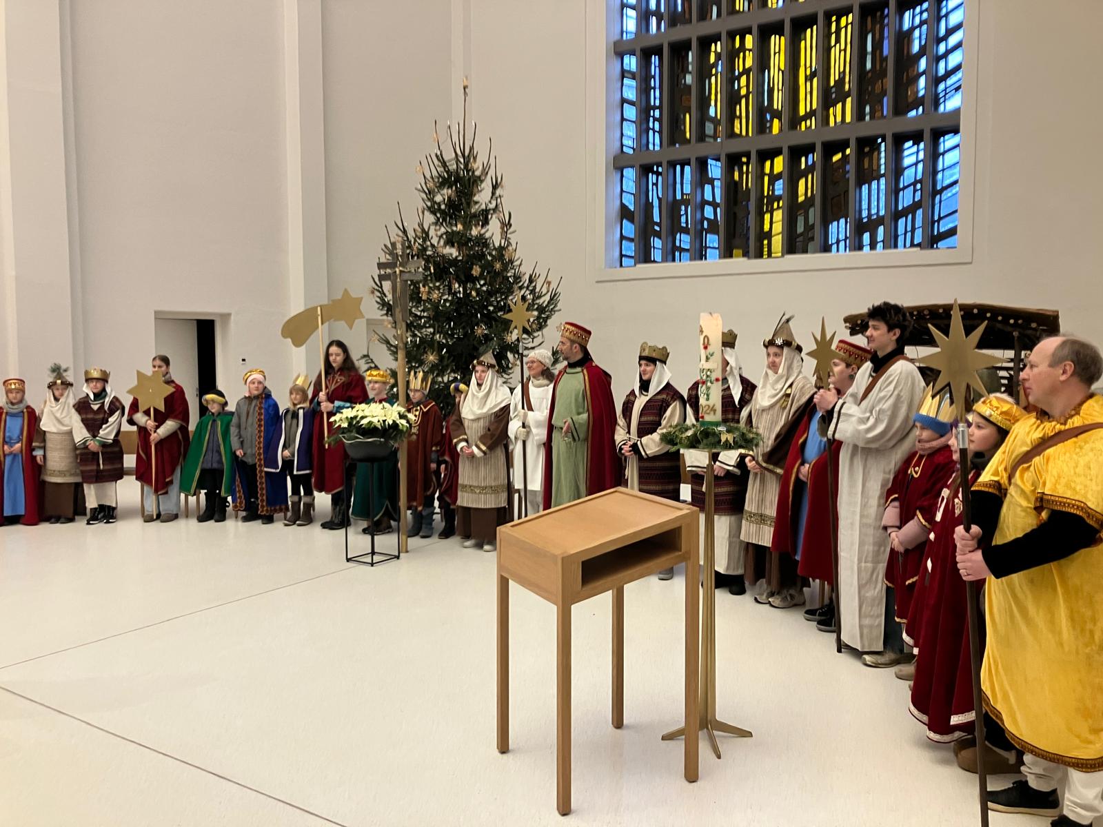 Nach einer kurzen "Abkühlphase" und dann wieder geordneten aufreihen der großen Sternsingerschar, konnte der Gottesdienst seinen weiteren, guten und ruhigen Verlauf nehmen.