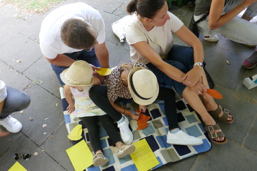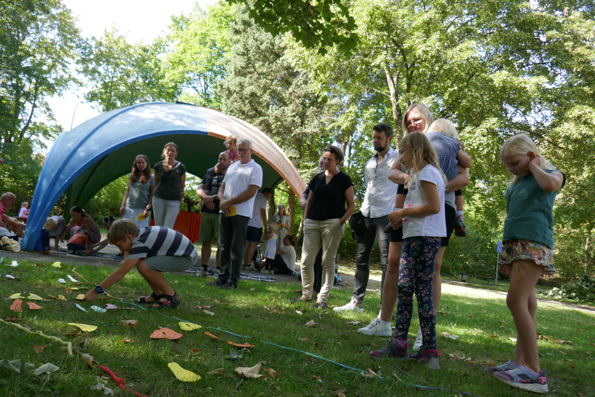 Rund 30 Personen, darunter viele Kinder, schrieben auf Fußspuren, was an Neuem auf sie zukommen wird im kommenden Schul- bzw. Arbeitsjahr.