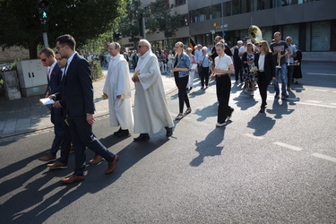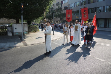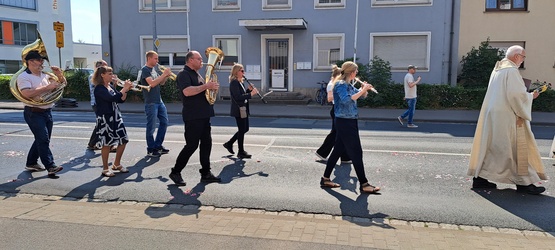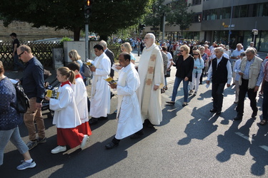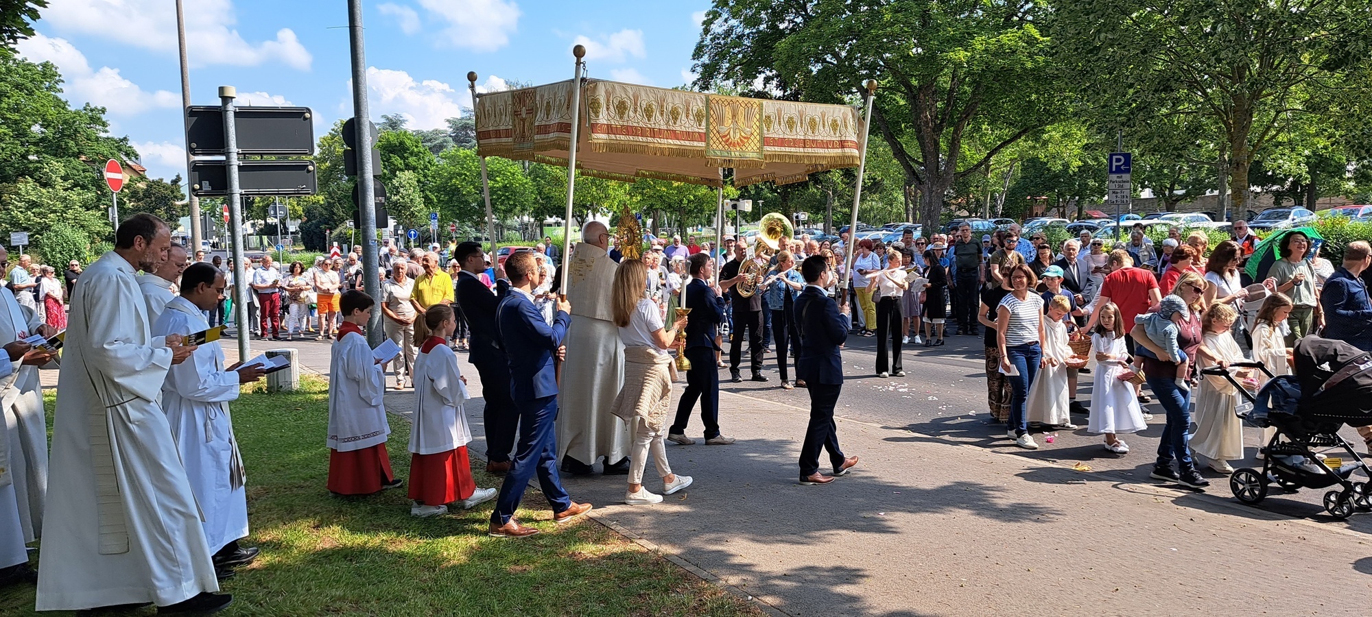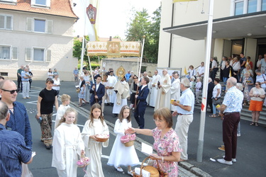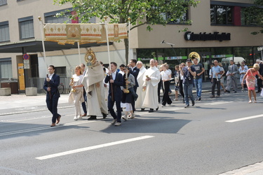 Die Prozession stand unter dem Leitwort „Sucht zuerst Gottes Reich und seine Gerechtigkeit. Dann wird euch alles andere dazugegeben“.