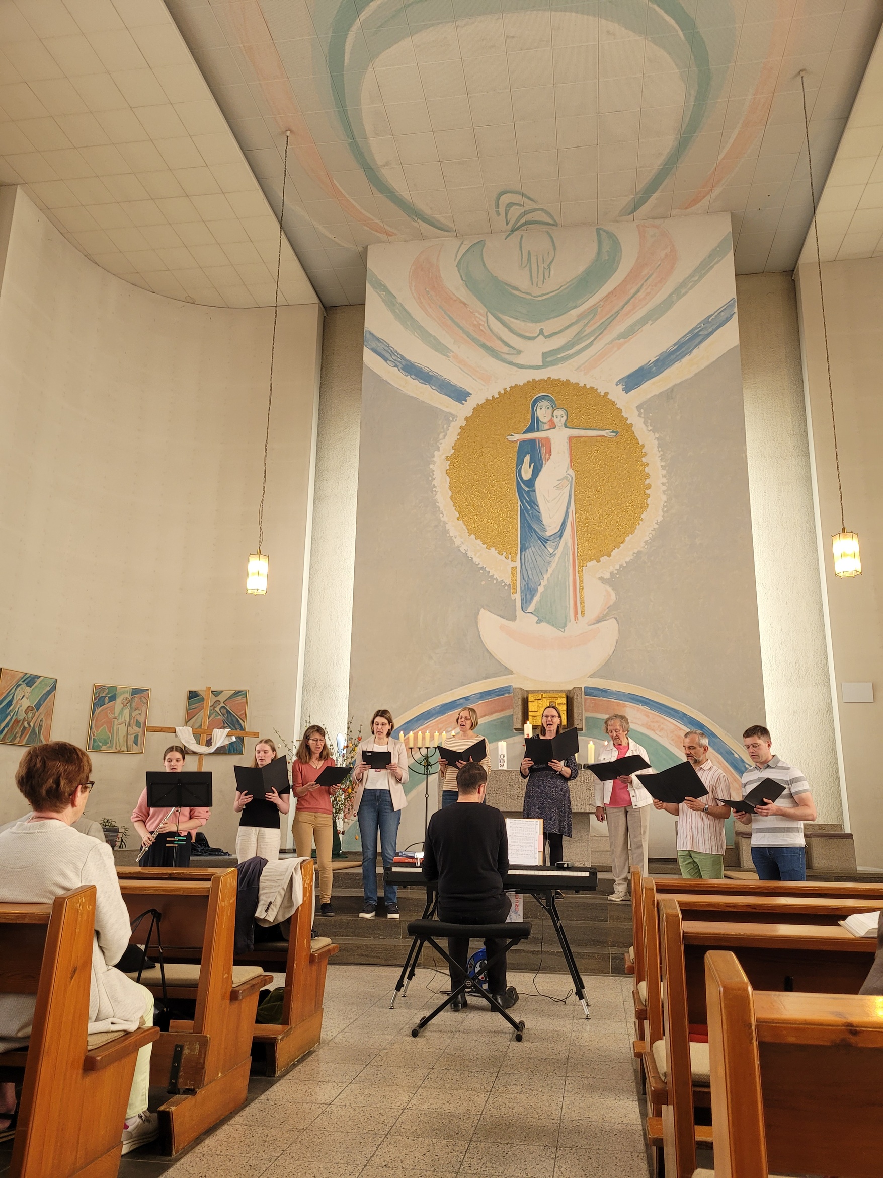 Den Marienmonat Mai läutete Maria Hilf mit einem besonderen "Ich Bin Da" - Gottesdienst ein. Die Schola präsentierte moderne und altbekannte Marienlieder, luden zum Mitsingen oder auch nur zum Zuhören ein. Umrahmt wurde das kleine Konzert von passenden Texten aus der Bibel und einem ganz persönlichen Einblick in Marias Tagebuch, wo sie über die einschneidenden Erlebnisse in ihrem Leben berichtete und über ihren Glauben, ihre Zweifel und ihren Schmerz zu uns sprach. Maria als liebende Mutter ist uns so nahe, kann uns Kraft und Trost spenden und uns Vorbild, Freundin und Zuflucht sein.