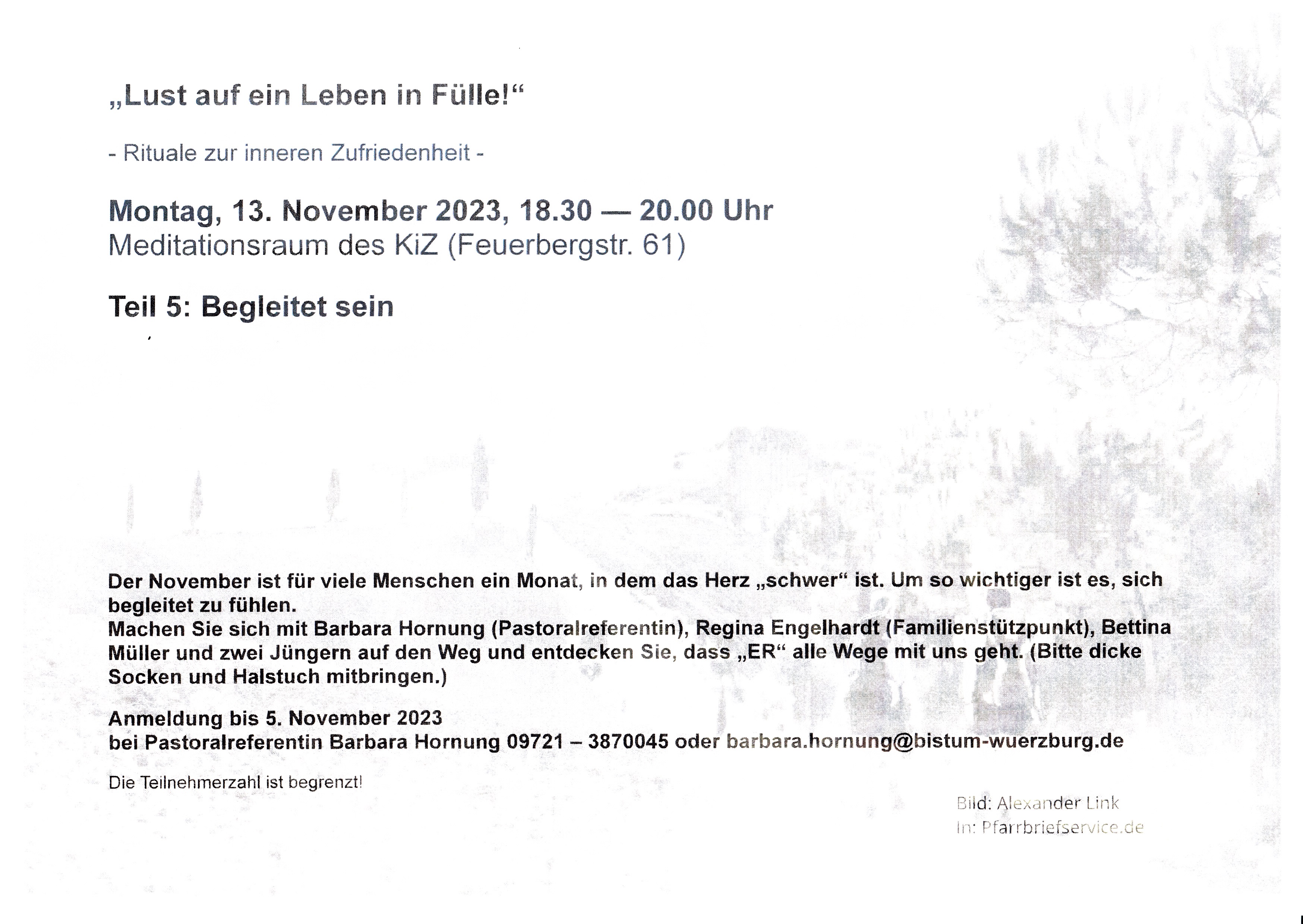 bei Pastoralreferentin Barbara Hornung 09721 – 3870045 oder barbara.hornung@bistum-wuerzburg.de