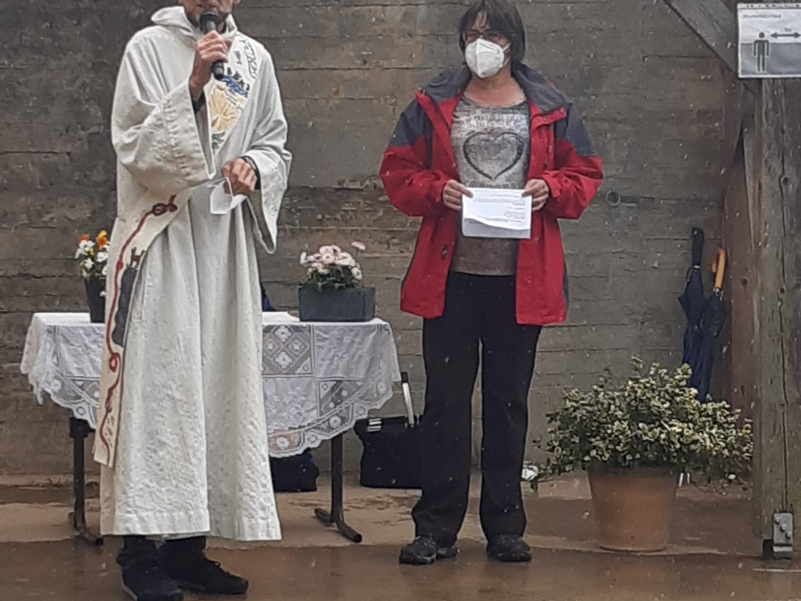 In einer kurzen Andacht wurde thematisiert, dass die geltenden Abstandsregeln der Corona-Pandemie nicht für die Beziehung zwischen Mensch und Tier gelten. Der Kontakt mit den Tieren schafft ein Stück Normalität und Nähe, die wir dringend brauchen. Psalm 36,7 erzählte davon, dass Gott Mensch UND Tier beisteht. Es ist das Bekenntnis, dass er für seine ganze Schöpfung da ist und nicht nur für den Menschen, als vermeintliche „Krone der Schöpfung“. Gerade in Zeiten der Corona-Pandemie ist das für viele Menschen tröstlich.