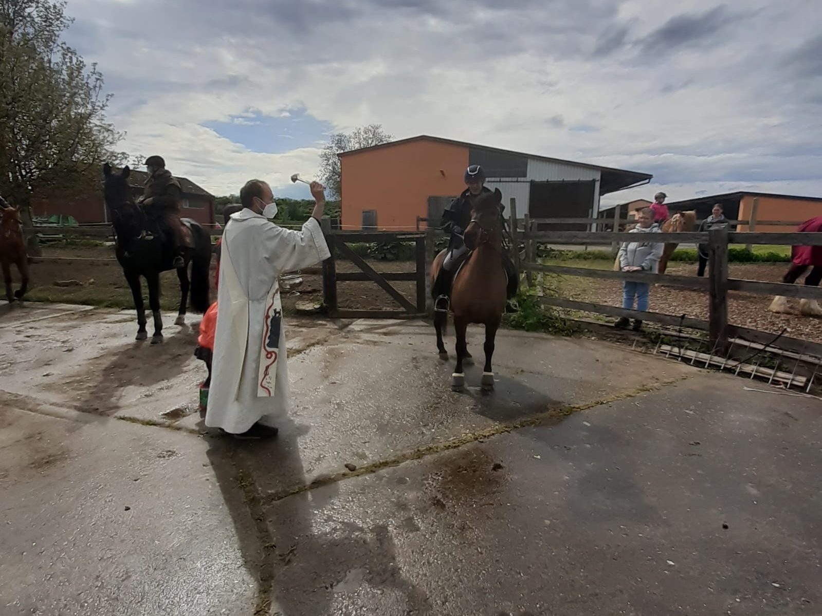 Am Ende wurden alle Tiere gesegnet, nicht alle fanden es jedoch angenehm, mit Weihwasser besprengt zu werden. Als Erinnerung an diese Andacht gab es selbstgebastelte hölzerne Hufeisen mit der Aufschrift „DU stehst uns mit deiner Hilfe bei!“