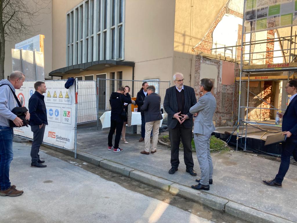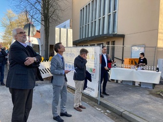 Bei strahlendem Sonnenschein fanden sich Gäste aus Politik, dem Arichtekturbüro, der Stadtkirche, des Kindergartens und der Bevölkerung auf dem Gelände ein. Herr Oberbürgermeister Remelé, Herr Pfarrer Christoph Warmuth und ein Vertreter des Architekturbüro weihten den