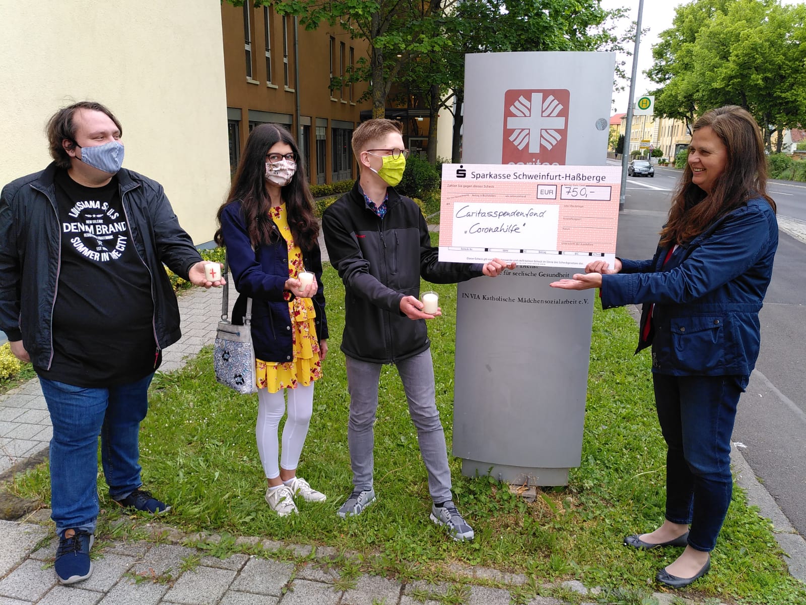 So erhielt der Allgemeine Soziale Beratungsdienst der Caritas Schweinfurt, stellvertretend hier Frau Gessner, einen Betrag von 750.- € vom Leitungsteam der Ministranten aus Maria Hilf für einen eigens dafür eingerichteten Hilfsfond. „Das Geld soll den Leuten hier zugute kommen“ – so eine Idee der Ministranten für diese Entscheidung. „Wir wollen was Gutes für andere tun!“ eine weitere Antwort auf die Frage nach der Motivation für diese Spende.