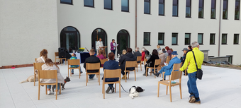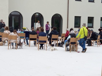 In den Fürbitten brachte Gabi Treutlein die angesprochenen Themen ins Gebet. Am Ende der kurzen Feier wurde jedes Tier einzeln gesegnet. Die Reaktion auf das dazu verwendete Weihwasser fiel sehr unterschiedliche aus. Zur Erinnerung an die Tiersegnung wurden Buttons mit der Aufschrift „Gott liebt auch die Tiere“ verteilt.