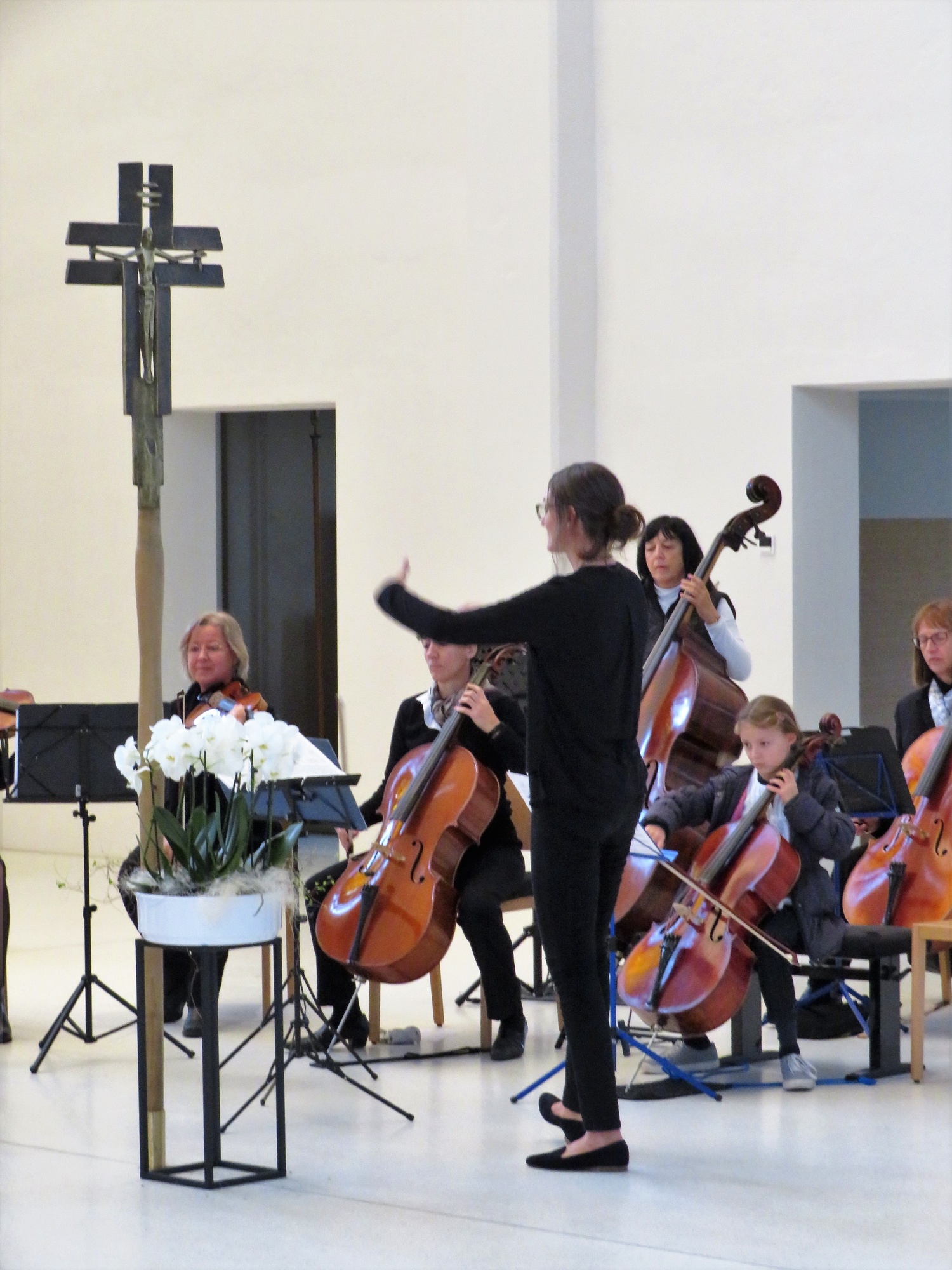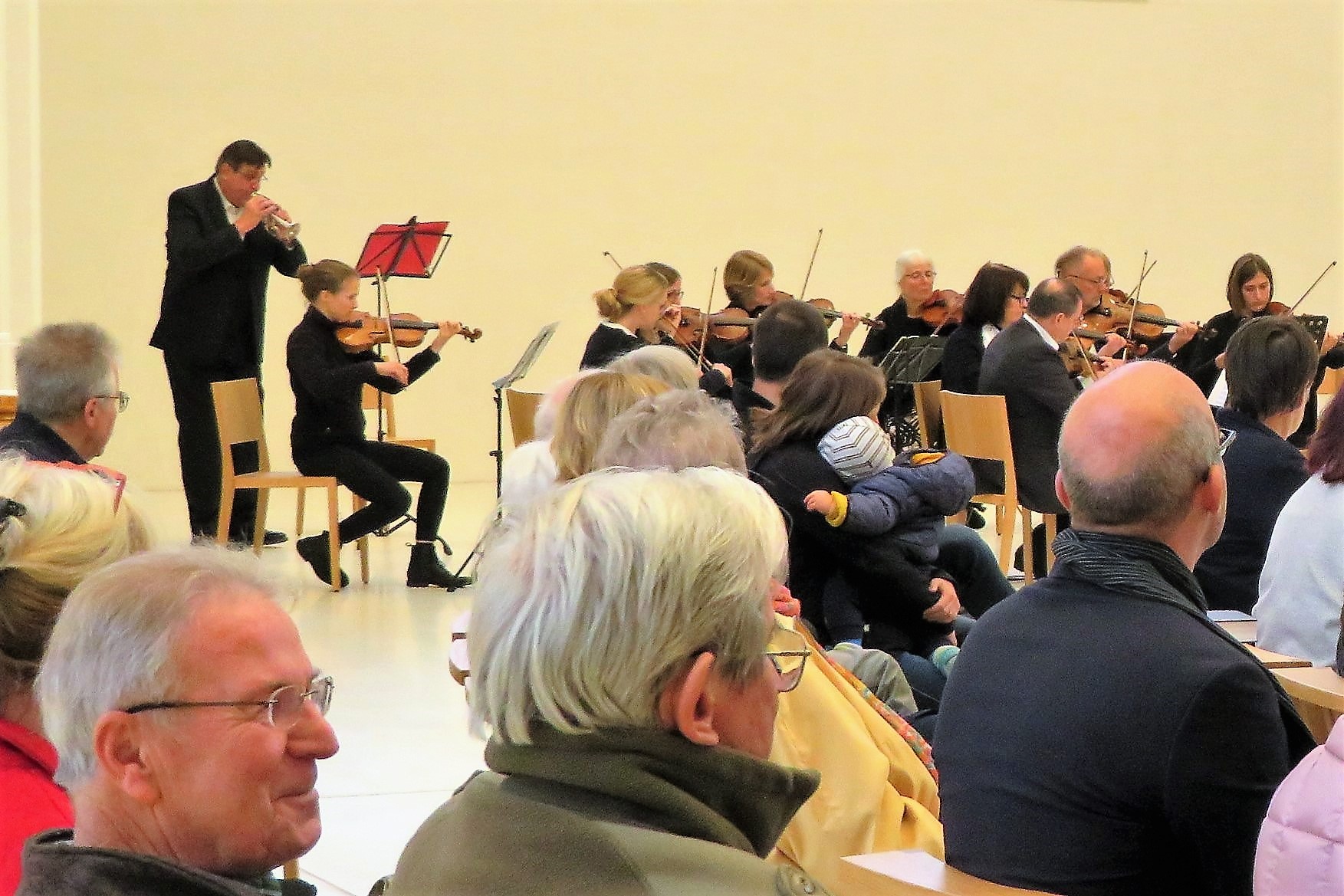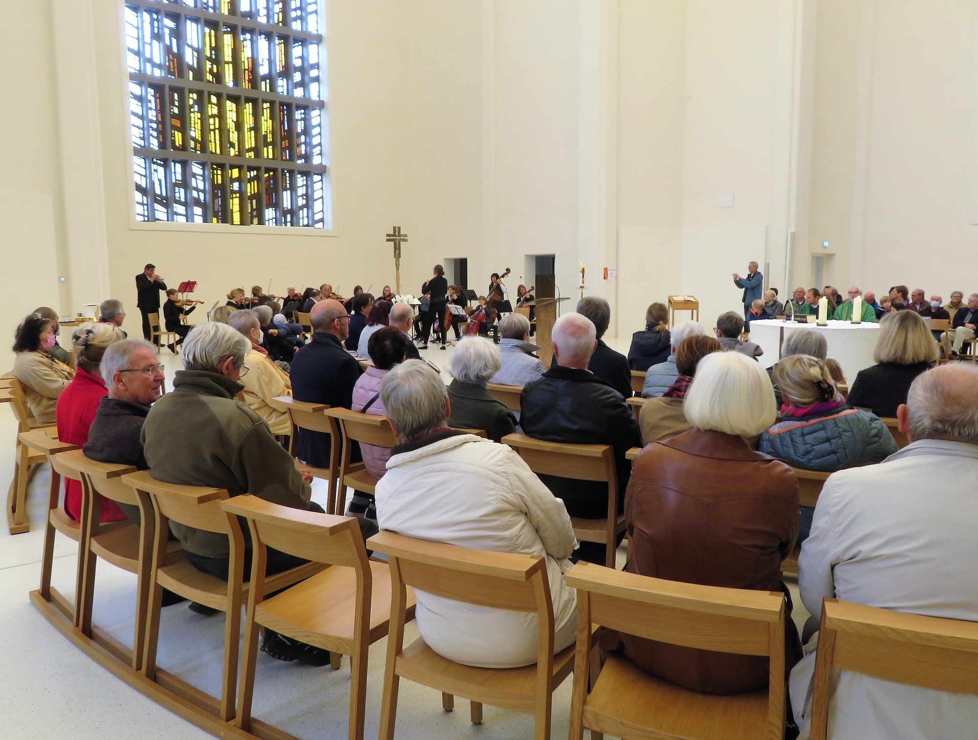 Dass diese gelingen kann, zeigte unter anderem der hohe Zuspruch, den der im Anschluss angebotene Geburtstagssekt bekam. Viele der kanpp 200 Besucher blieben noch eine kleine Weile, ließen die professionellen und stimmungsvollen Klänge des Kammerorchesters mit Werken von Antonio Vivaldi und Valentin Rathgeber nachwirken und kamen über die Geschichte und Zukunft der Kirche ins Gespräch. Dass die Musik in der Kirche eine Zukunft hat, bewies die wohl jüngste Solistin, die je in St. Anton gehört wurde. 8 Jahre alt und schon ein Cellosolo präsentiert, und das so gekonnt, alle Achtung! Ein Extraapplaus für die Tochter der Dirigentin, aber auch der langanhaltende Beifall für das Orchester selbst zeigten, dass sich die Qualität des Orchesters auf höchstem Konzertniveau befand und dass die neue Akustik diese Art der Musik sehr gut unterstützt.