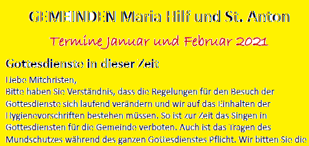 Das beigefügte Dokument enthält für die beiden Gemeinden einige wichtige Informationen und geplante Termine / Gottesdienste.