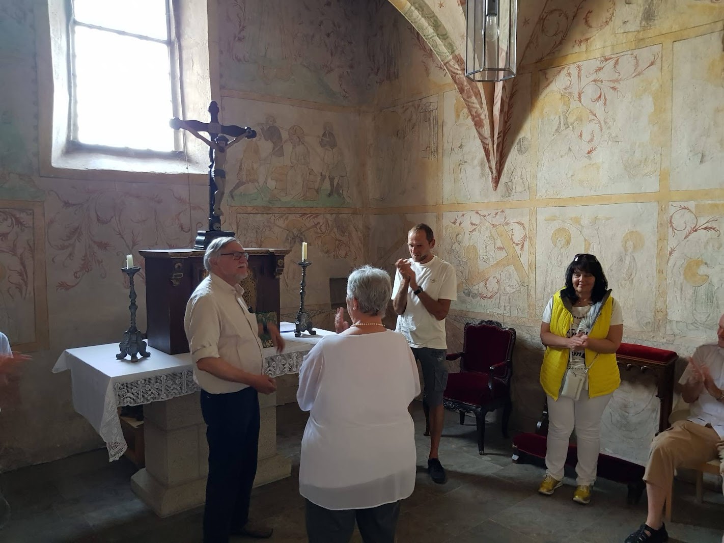 ausführlich und kompetent vor. Höhepunkt der Führung war für mich die Besichtigung der Fresken in der alten Sakristei. Sie zeigen das Leiden und die Auferstehung Jesu Christi und das Martyrium Johannes des Täufers sowie einige Heiligenfiguren.