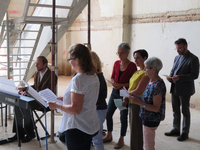 Das Ziel gilt es dabei immer vor Augen zu haben: ein Haus voll Glorie, d. h. ein Haus, wo sich Menschen mit unterschiedlichsten Anliegen begegnen und einfinden können, und ein Haus, in dem der Auftrag „Vielfalt leben“ umgesetzt wird. Jeder, der das Zentrum betritt, soll diesen festen Boden unter den Füßen spüren können, sowohl baulich mit einer und guten Steinboden als auch atmosphärisch und inhaltlich, indem dieser neue Grundstein die Ideen dieses Gotteshauses und Gebäudekomplexes mit seinen beteiligten Diensten, Einrichtungen und Nutzern enthält. Doch dazu später.