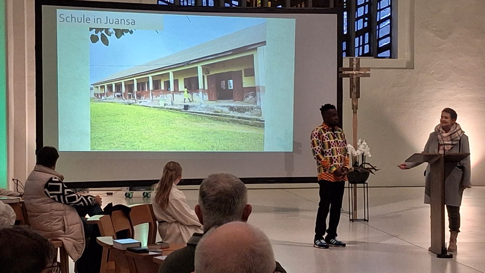Im weiteren Gottesdienst, der von einer Atmosphäre der Gemeinschaft und des "Miteinander-Glauben-Feierns" getragen war, fand dann auch ein informativer Impuls aus Ghana seinen Platz. Das Hilfsprojekt von Augustine Kusi Agyemang (Projektleiter Ghana) stellte Marion Hammer dar und zeigte die Notsituation der dortigen Bevölkerung. Besonders die medizinische Versorgung ist katastrophal und fordert durch das Prinzip „cash for carry“ zahlreiche Todesopfer, weil sich die Bevölkerung eine ärztliche Behandlung schlichtweg nicht leisten kann. Schwere gesundheitliche Folgen, bis hin zu Tod, sind an der Tagesordnung. Durch die unmittelbare und direkte Finanzierung medizinischer Notfälle im Umfeld des Projektleiters kann hier zumindest der berühmte Tropfen auf den heißen Stein fallen.