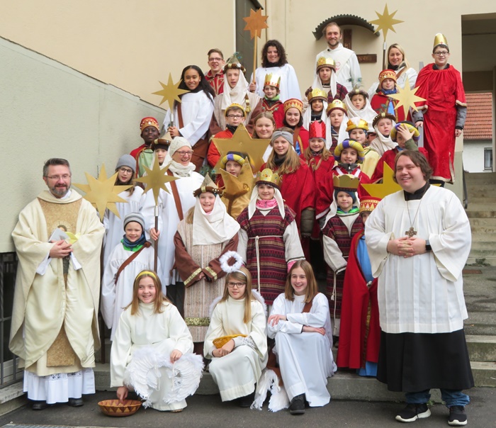 Bei gutem Wetter machte es Kindern und Jugendlichen wohl auch Spass. Es waren nicht nur die Spendndosen gut gefüllt, sondern auch die Taschen und Körbe mit Süßigkeiten. Ein beachtliches Spendenergebnis von 4217.- € Euro konnte am Ende des Tages der zufriedene Diakon Joachim Werb bekannt geben. Bei spürbar rückgängigen Anmeldezahlen ist das erfreulich. Das Geld wird der Sternsingeaktion zugeleitet und damit wird auch das mit uns gut verbundene Projekt „Licht und Hoffnung für die arbeitenden Kinder in Chimbote (Peru) unterstützt.