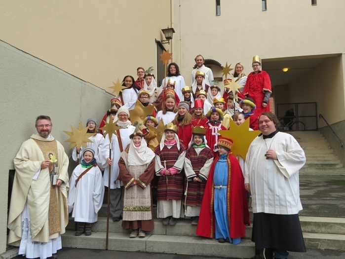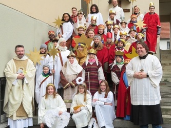 Nach einem gemeinsamen Mittagessen zogen auch in diesem Jahr wieder rund 40 Kinder, Jugendliche und Erwachsene in neun Gruppen unter dem Motto - Frieden für die Kinder – im Libanon und auf der ganzen Welt – zu den Häusern der beiden Gemeindegebiete Maria Hilf und St. Anton.
