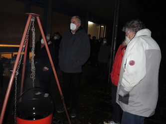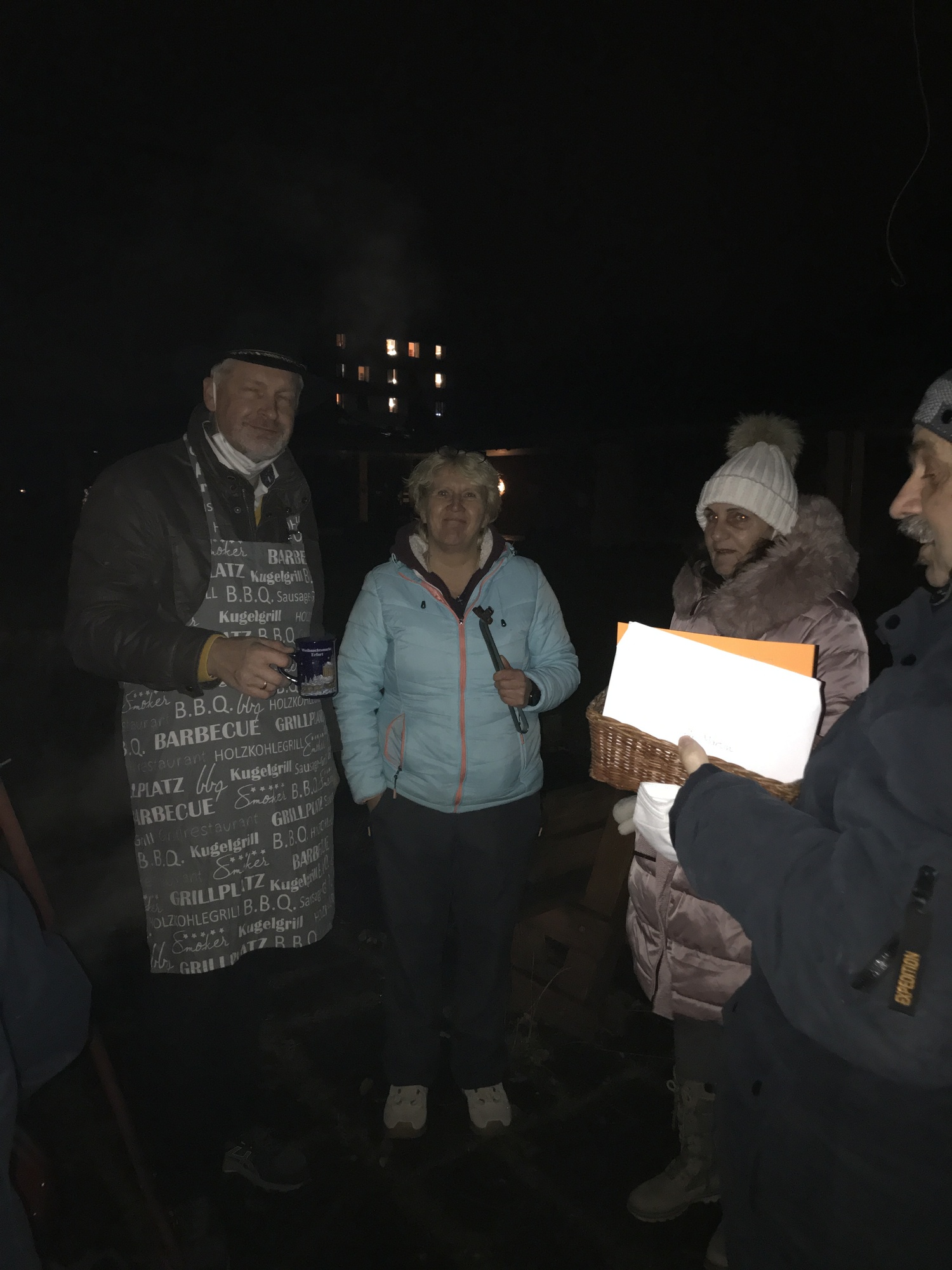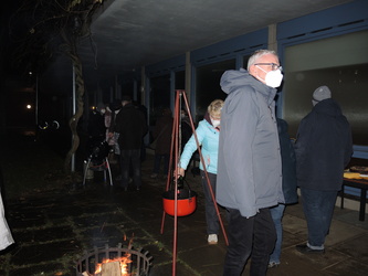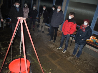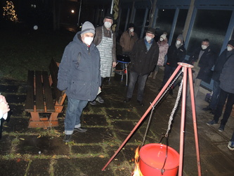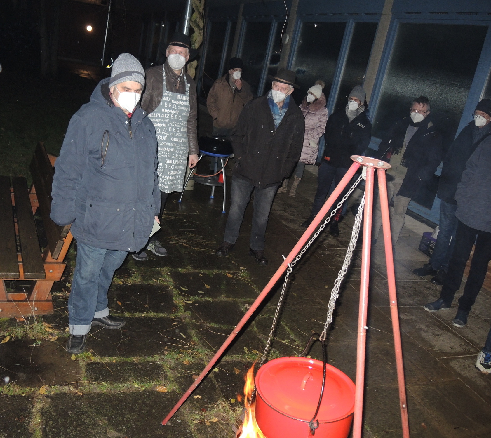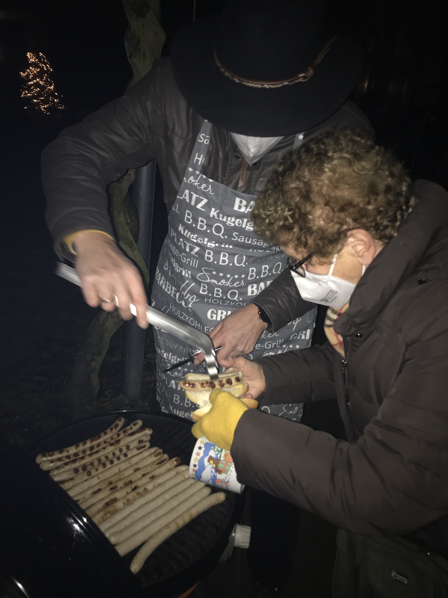 Bei kühlen Temperaturen und Schneeschauer schmeckten Glühwein vom offenen Feuer, Bratwürste vom Grill und Kaffee und Kuchen des Kindergartens hervorragend.