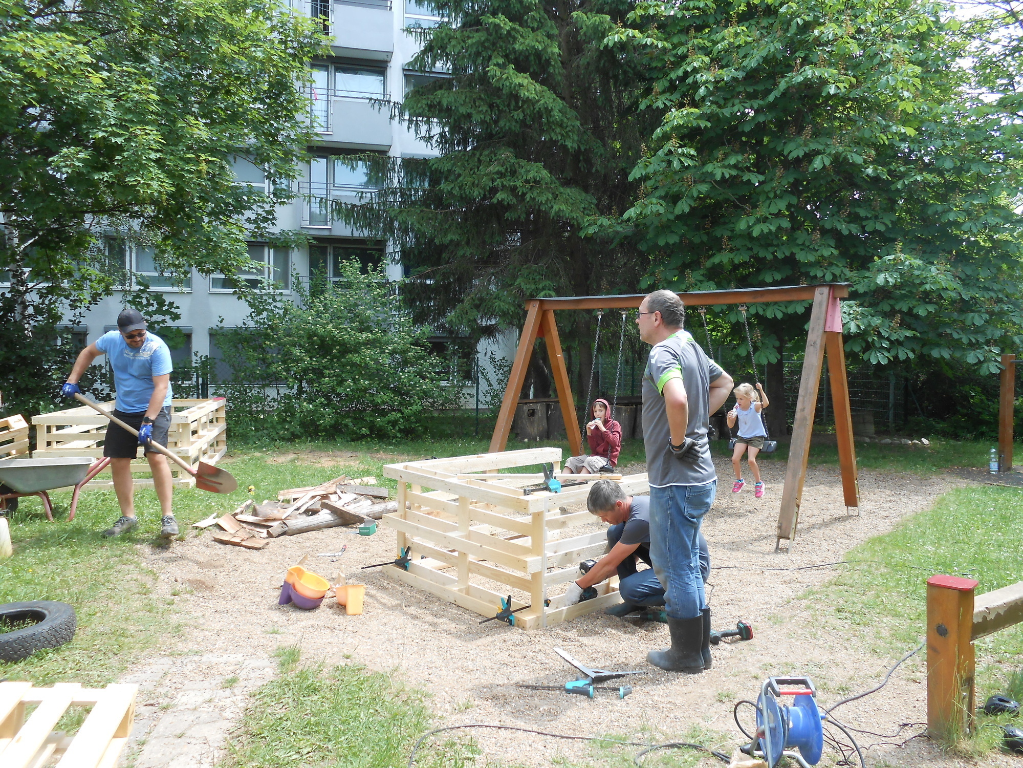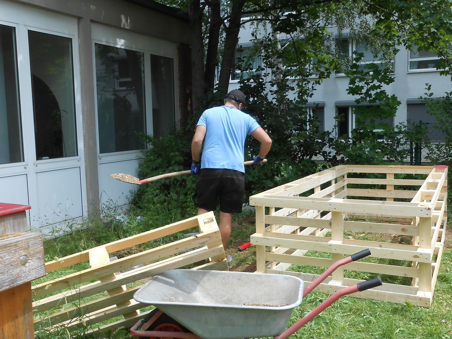Gesunde Ernährung in der Einrichtung ist uns allen sehr wichtig. Um das Wissen über gesunde Nahrungsmittel zu erweitern, haben wir zusammen mit den Eltern zwei große Hochbeete gebaut. Unsere Gemüse und Salate kommen ab jetzt direkt aus unserem Garten. Sie werden von den Kindern eingepflanzt und natürlich regelmäßig gegossen. Dank unseren fleißigen Vätern kann ab jetzt das Gesunde direkt bei uns wachsen und wir alle sorgen dafür, dass Gemüse und Salate täglich auf unserem Tisch landen.