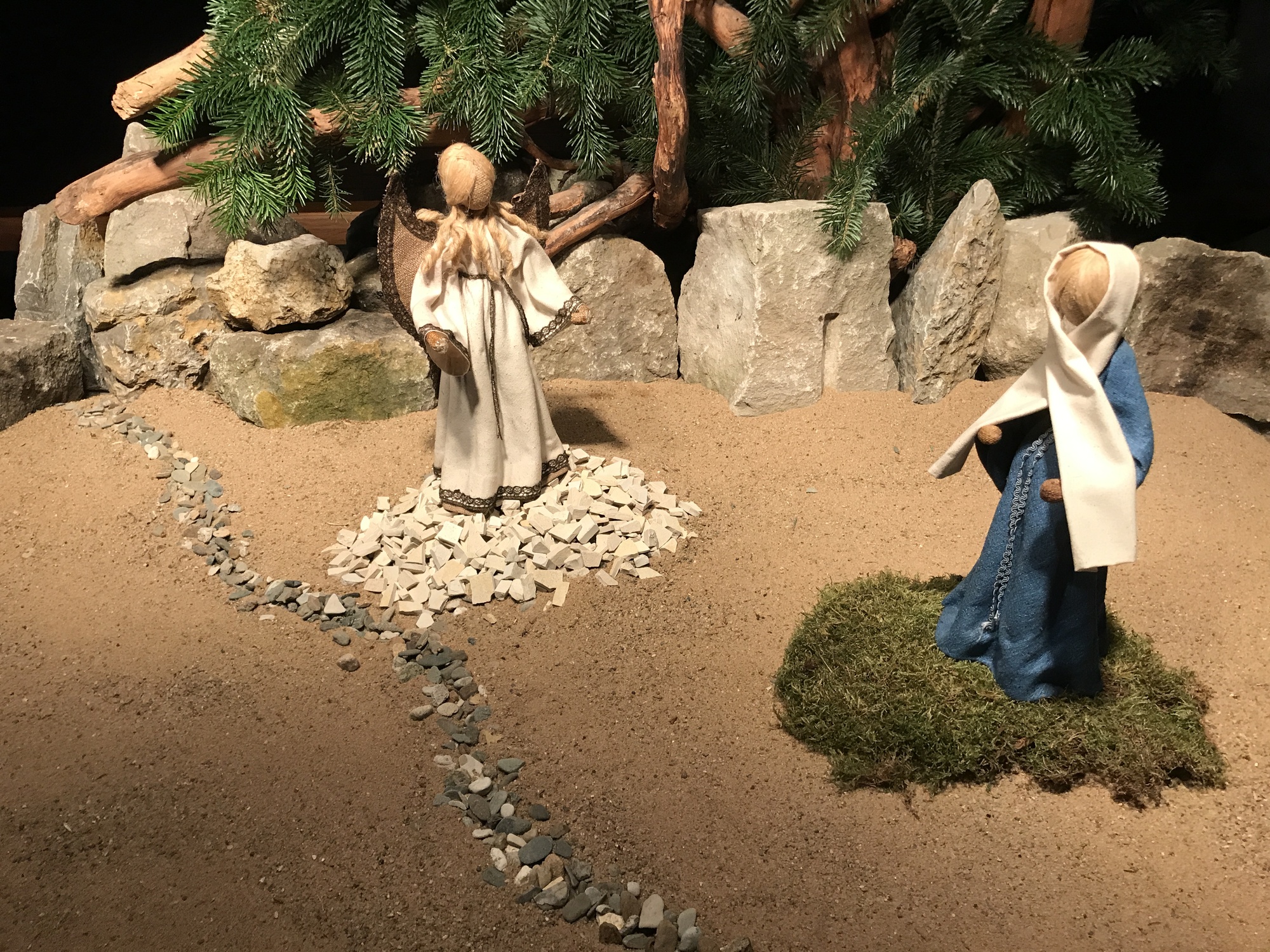 Unerwartete Begegnung - plastisch zu sehen im Krippenbild dieser Woche. Maria begegnet dem Engel. Und darauf war sie weder vorbereitet, noch hätte sie das überhaupt erwartet.