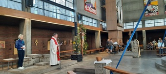 Im Gottesdienst ging Pfarrvikar Uwe Schüller in seiner Predigt, die unter dem Thema „Glut, nicht Asche“ stand, darauf ein, dass es nicht die Wunder von damals sein müssen für einen Glauben, der heute gelebt werden kann. Die Wunder von damals müssen wirklich nicht sein. Jede Zeit braucht ihre eigenen Wunder und kann sie auch entdecken. Trotz der oftmals depressiven und resignierenden Stimmung in unserer Kirche, kann man Gründe finden, um in und bei ihr zu bleiben.