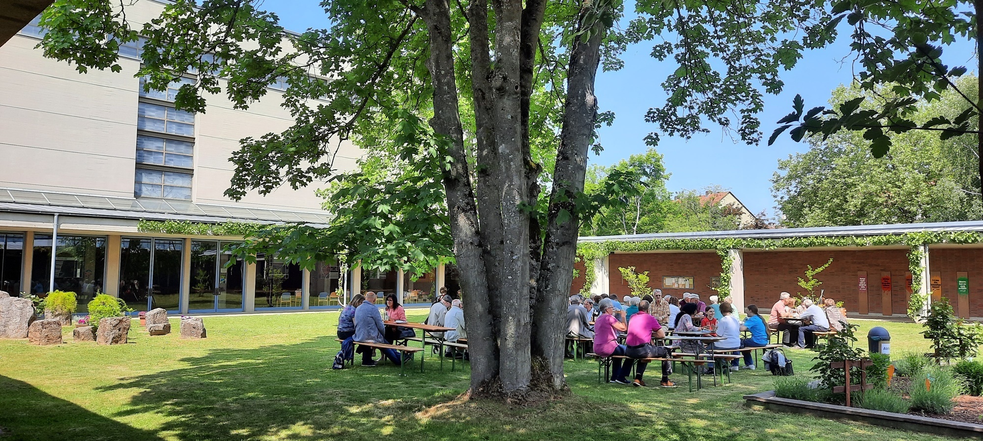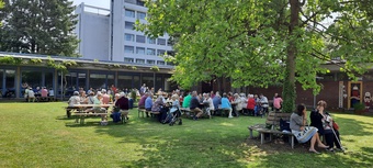 Die große Zahl der GottesdienstbesucherInnen, die anschließend im schönen Lichthof zum Weißwurstfrühstück und zum gemütlichen Beisammensein geblieben sind, beweist, dass die Feier des Gemeindegeburtstages in Michael als Ort der Begegnung gerne angenommen und weitergeführt wird.