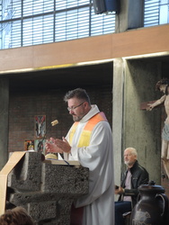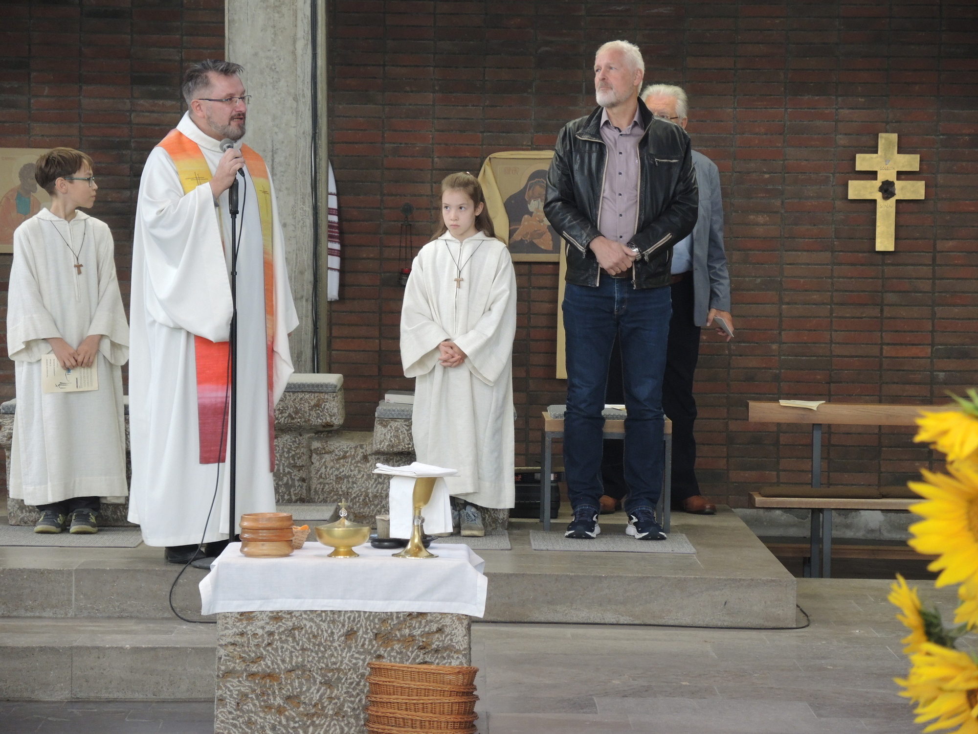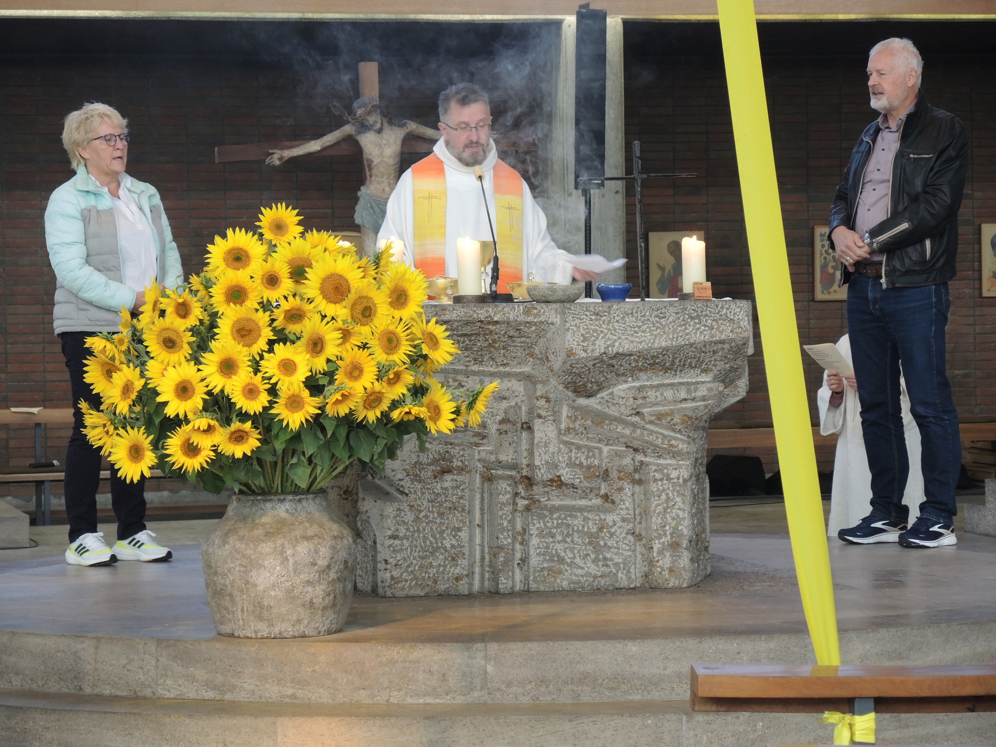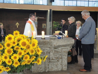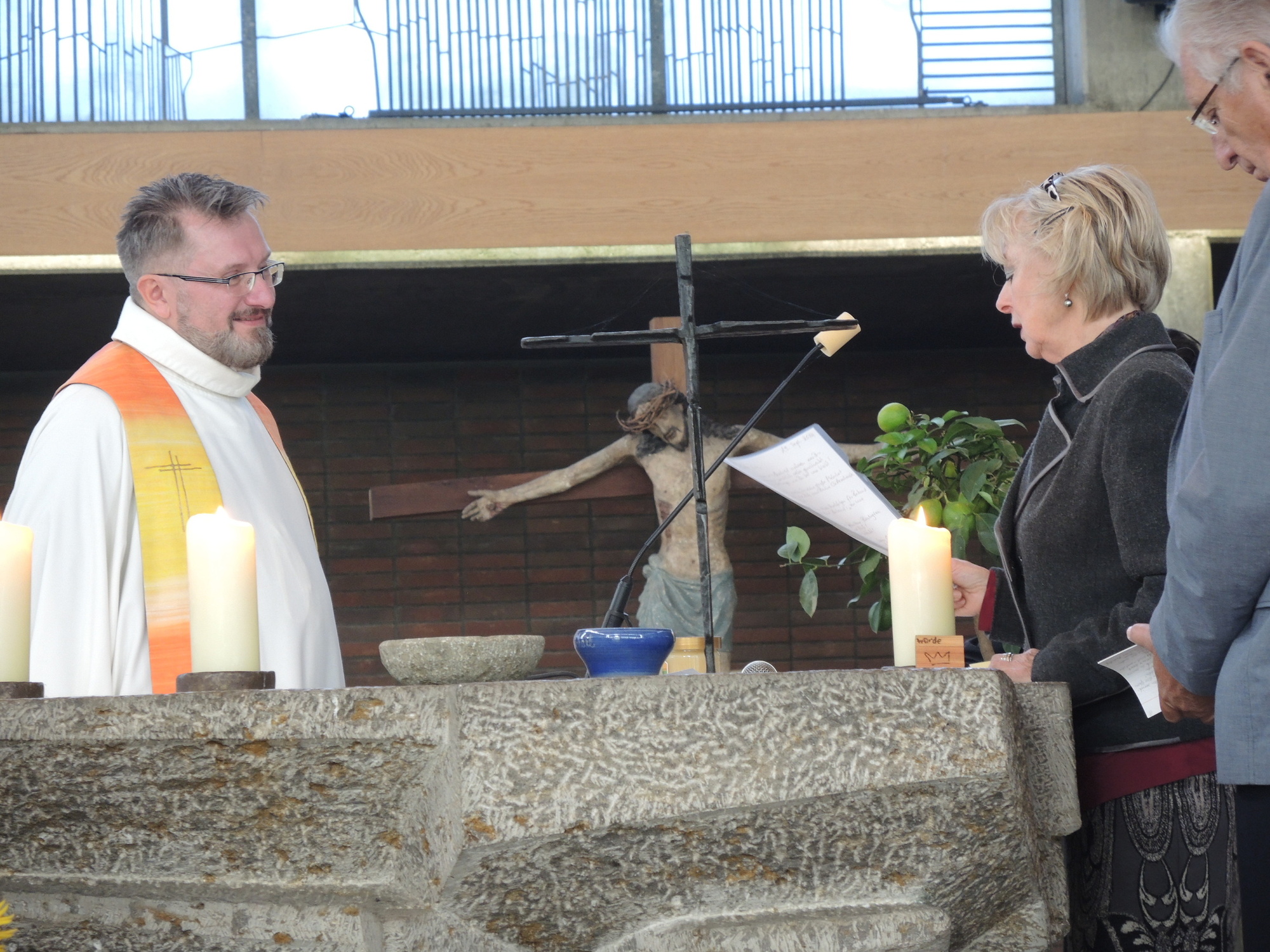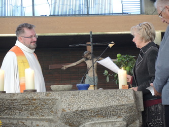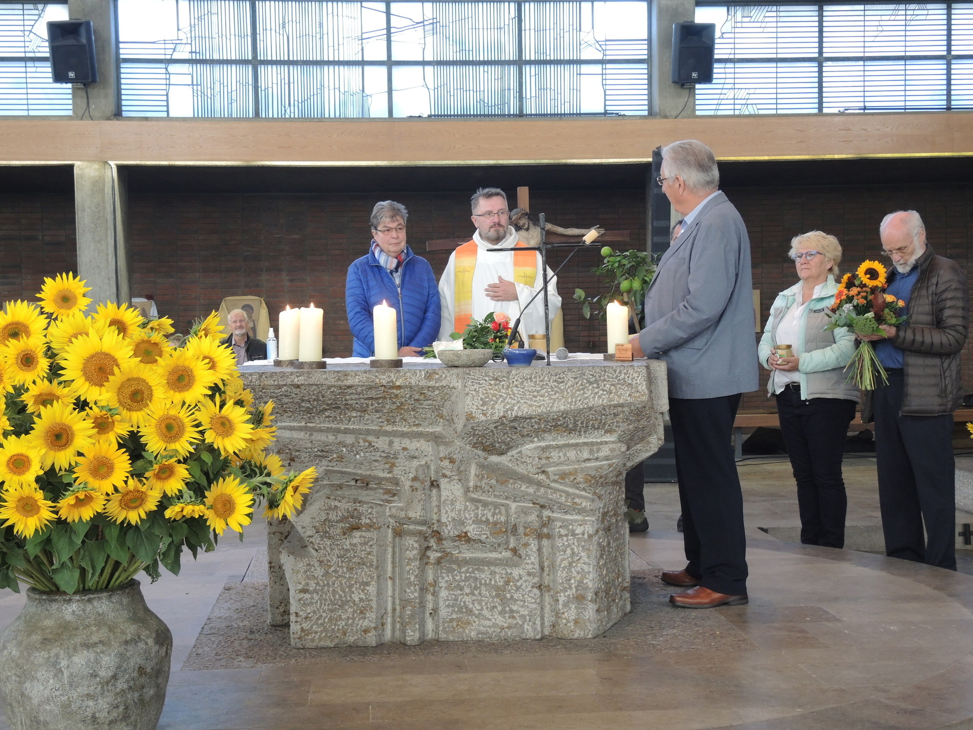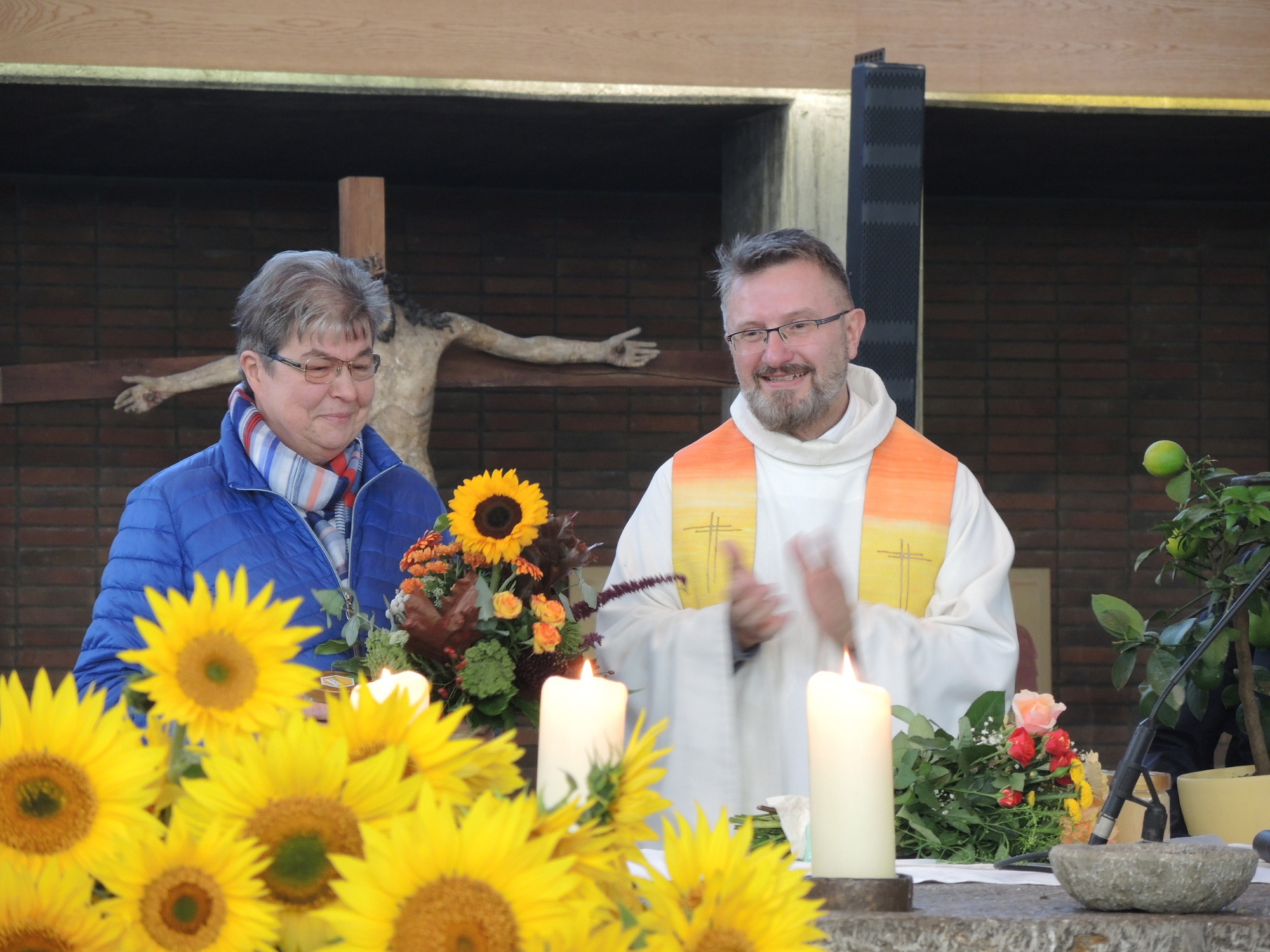 Nach dem Gottesdienst bedankte sich Kirchenpfleger Dieter Rückert bei ihm für die gedeihliche Zusammenarbeit. "Uwe, du hast in unserer Pfarrgemeinde Spuren hinterlassen!" Als Erinnerung überreichte die Kirchenverwaltung ein Zitronenbäumchen. Seitens der Michaelswerkstatt und auch aus persönlichen Gründen bedankte sich Monika Brünner mit einem Blumenstrauß bei ihm.
