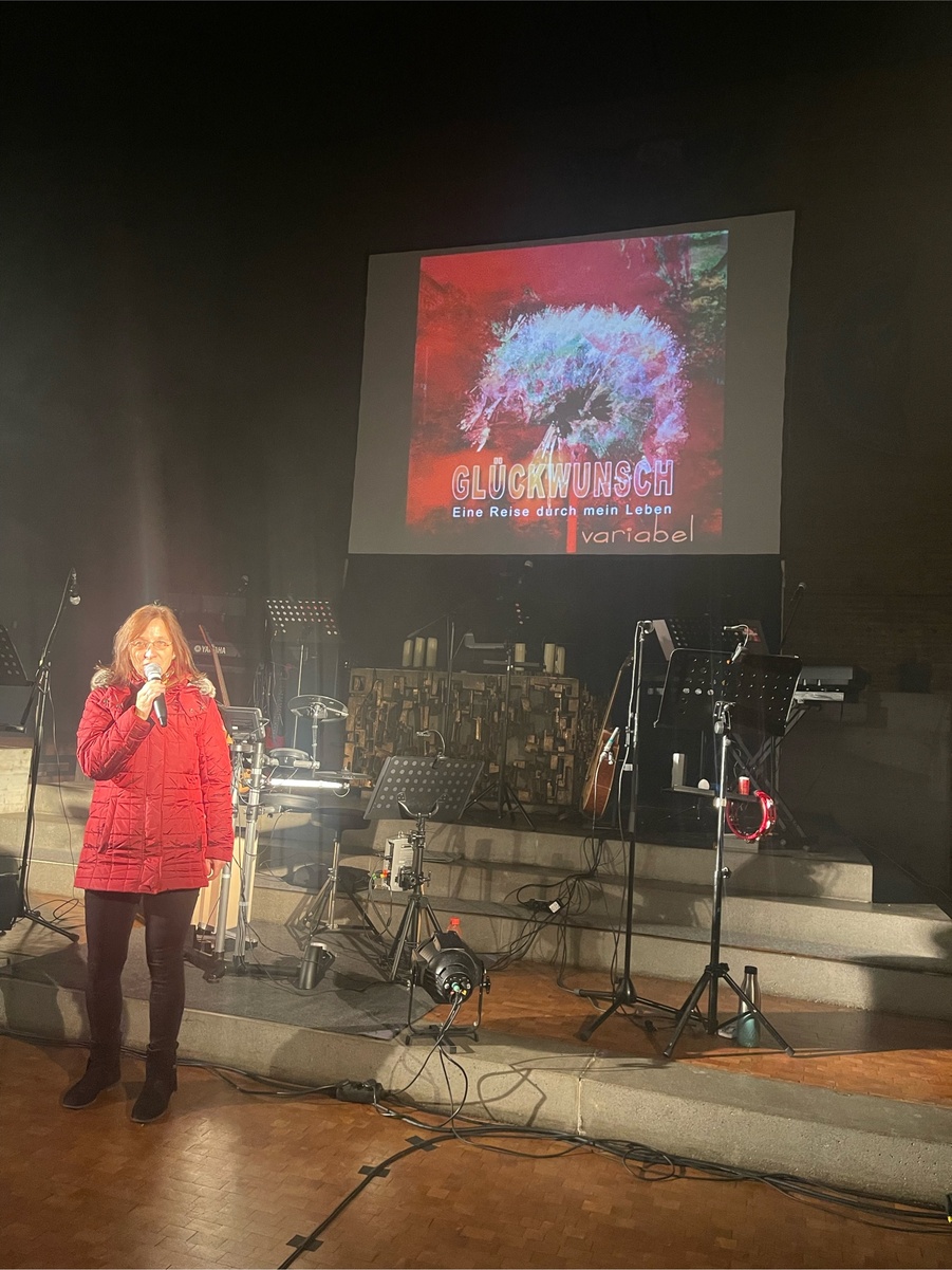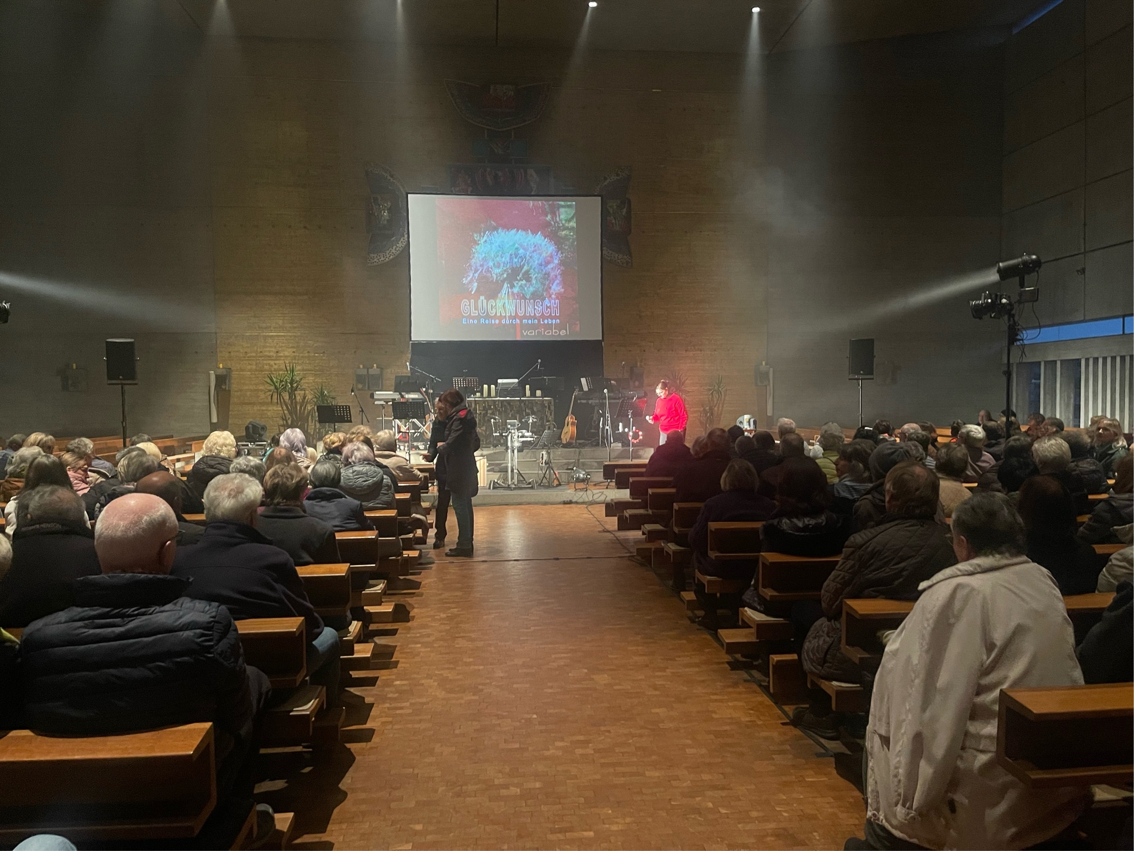 Tipps für das kleine Glück geben die Lieder von "Variabel". "Einfach leben, einfach sein." Oder sich bewusst dafür entscheiden, glücklich zu sein. "Ich lade Sie ein, mehr zu leben", fordert Sängerin Caro Bauer auf. Und beim Lied "Ich will Farbe leben", kommt Schwung in die Kirche. Genauso wie beim Kanon-Singen mit dem Publikum in der fast vollen Kirche.