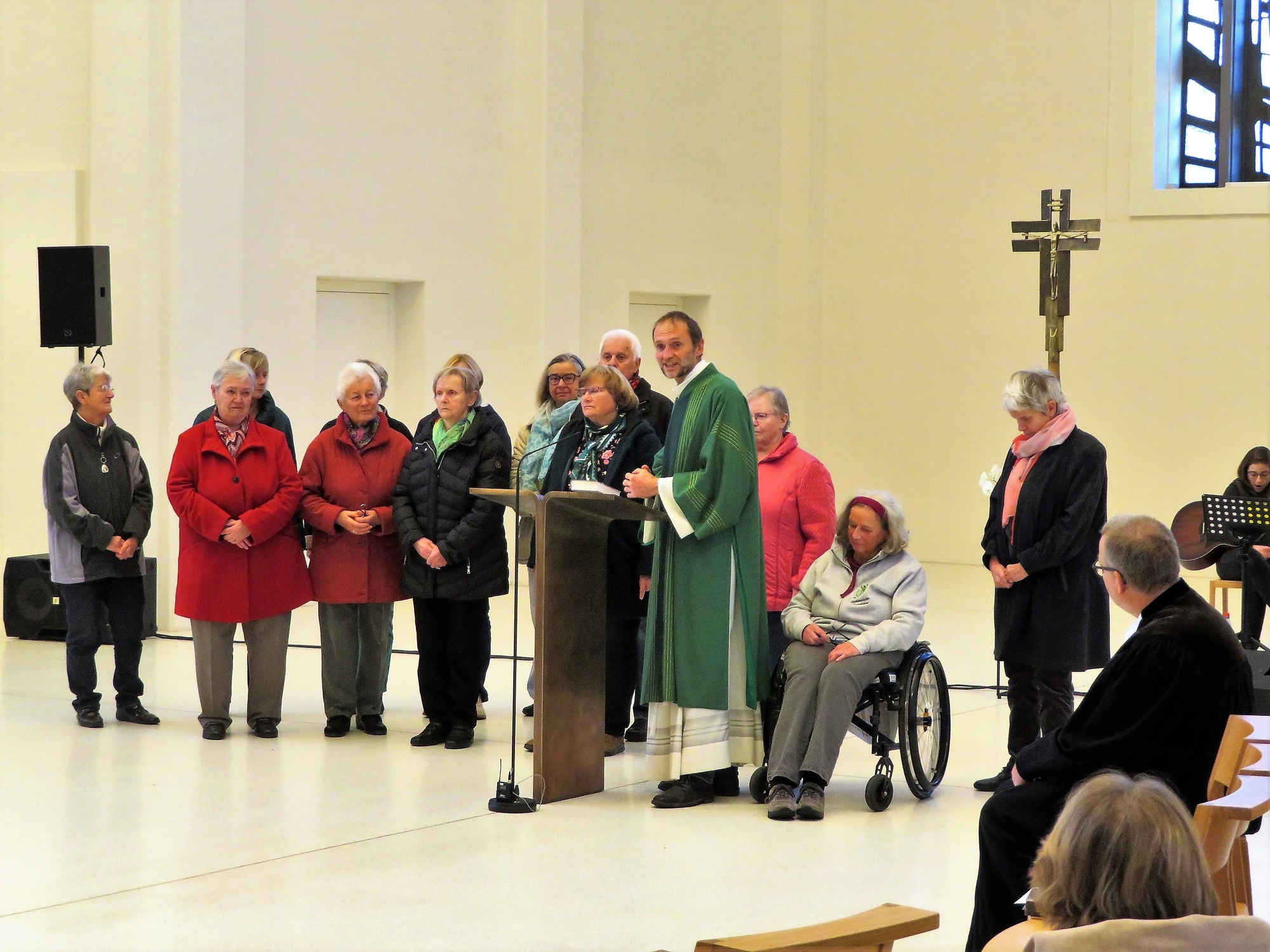 Mehr als ein Dutzend Frauen und Männer der Aktionsgemeinschaft standen heute im Mittelpunkt Ihres Jubiläumsgottesdienstes. Sie gaben Einblicke in ihr Ehrenamt, erinnerten an die sieben Werke der Barmherzigkeit und formulierten Fürbitten im Sinne ihrer Anliegen.
