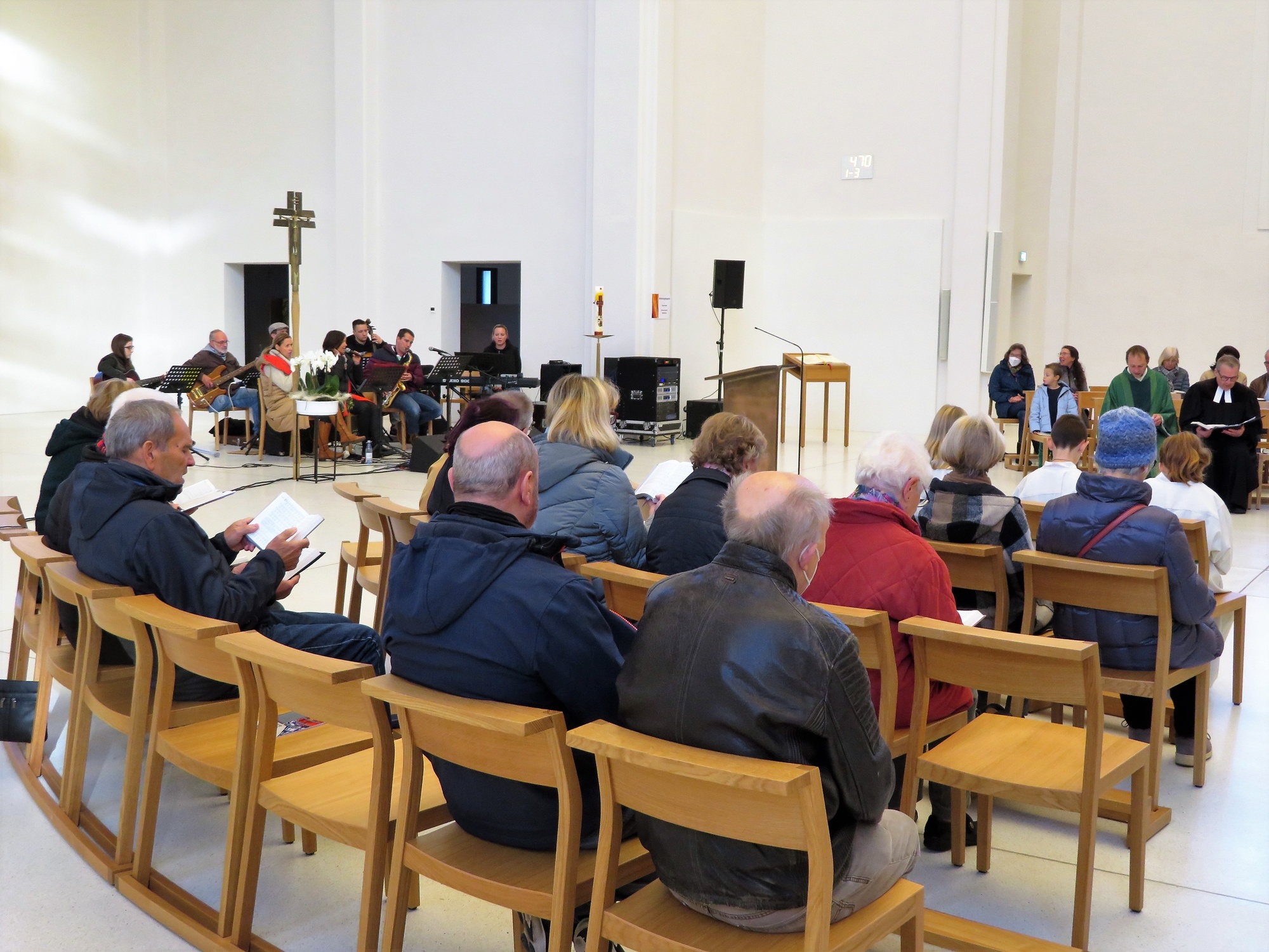 Die Band „Godspell", welche den Wortgottesdienst musikalisch hervorragend begleitete, lud durchweg zum Mitsingen ein und wurde mit von Herzen kommenden Applaus bedacht.