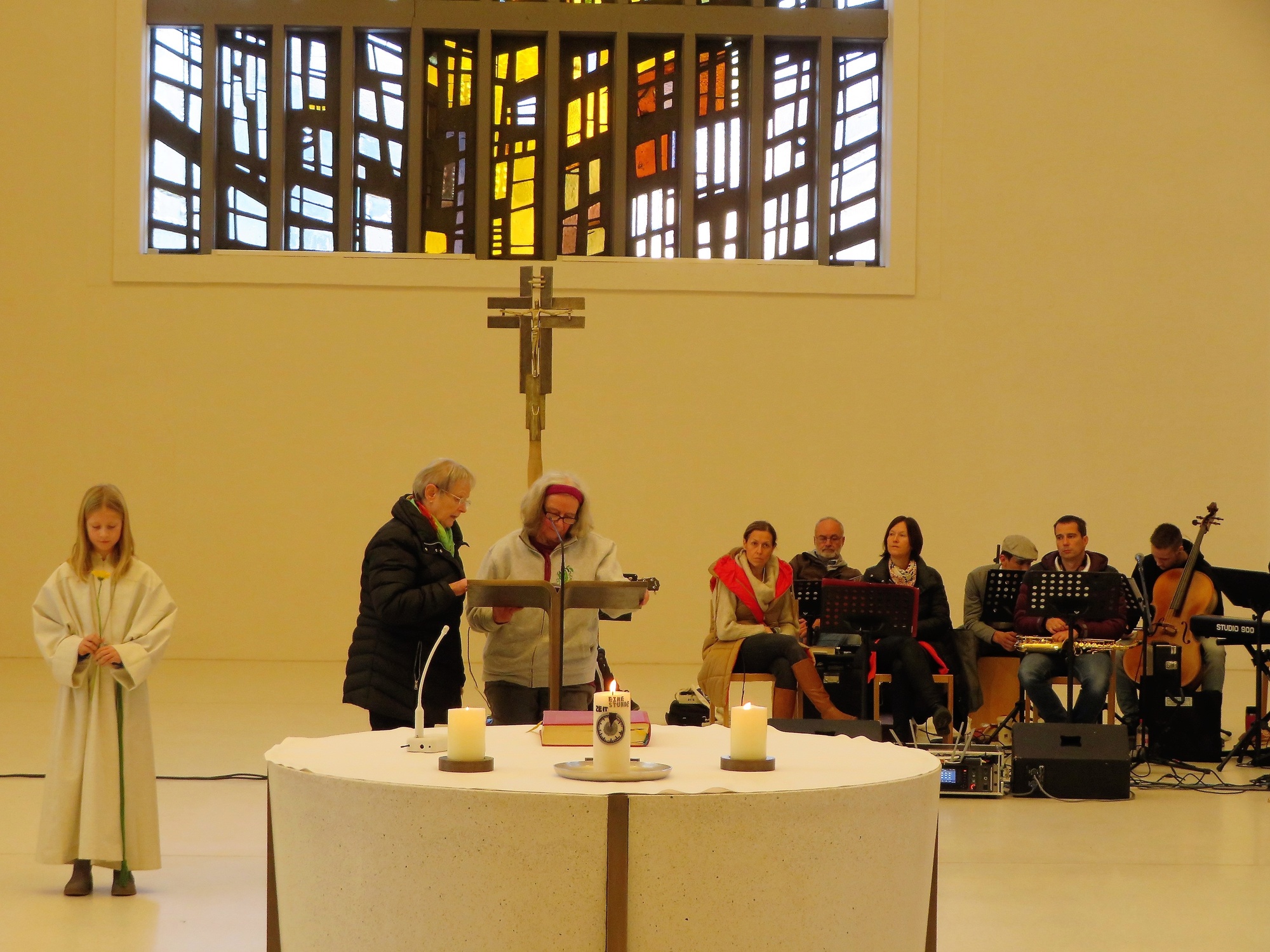 So war’s auch heute wieder in St. Anton. Viele der Gottesdienstbesucher blieben, nachdem die letzten Klänge der Band „Godspell“ für einen himmlischen Engel als Begleiter verklungen waren, um sich bei Kaffee oder Tee über dies und das auszutauschen - ein munteres Treiben am Ende „einer Stunde Zeit“ für Gott.