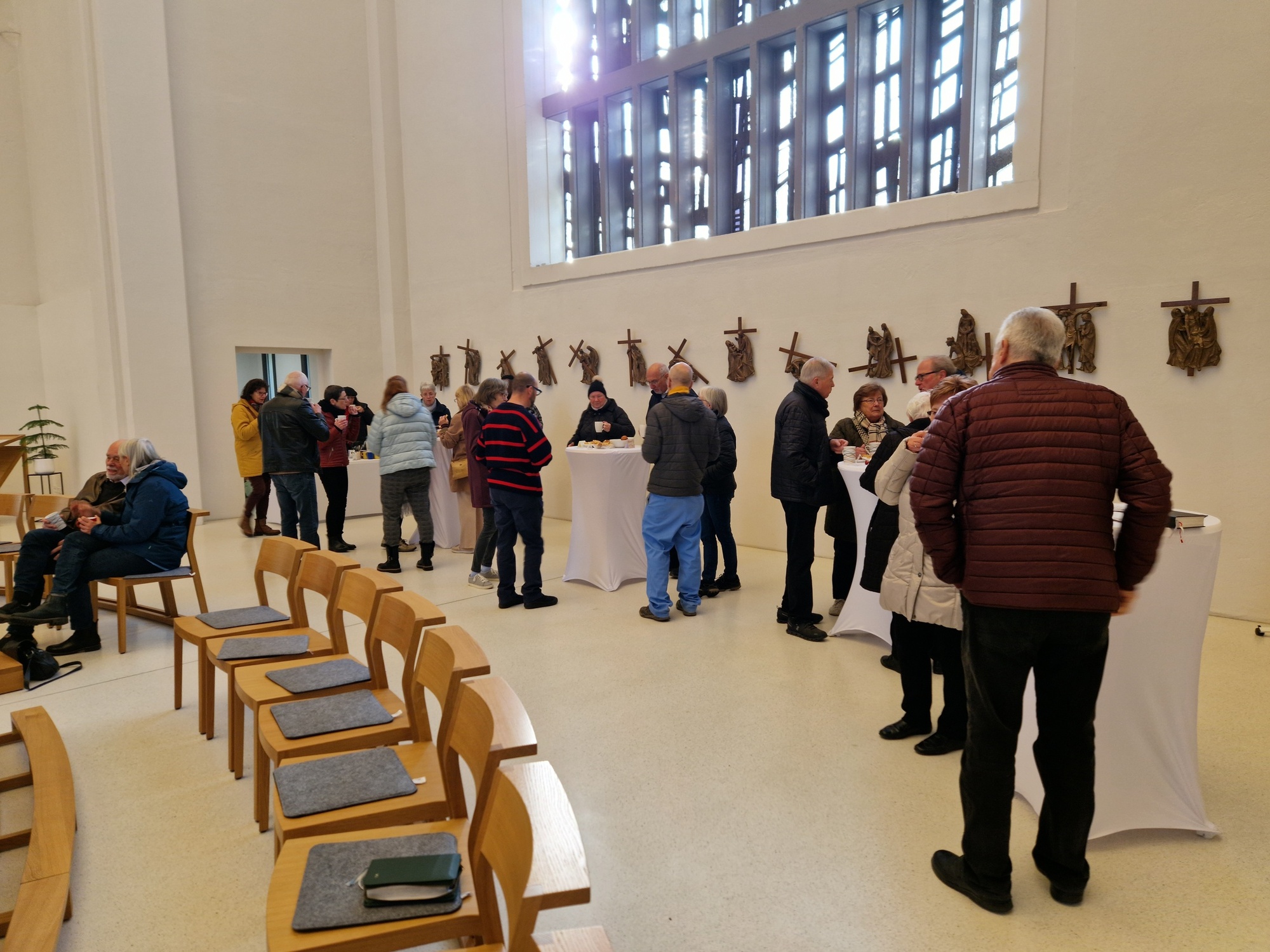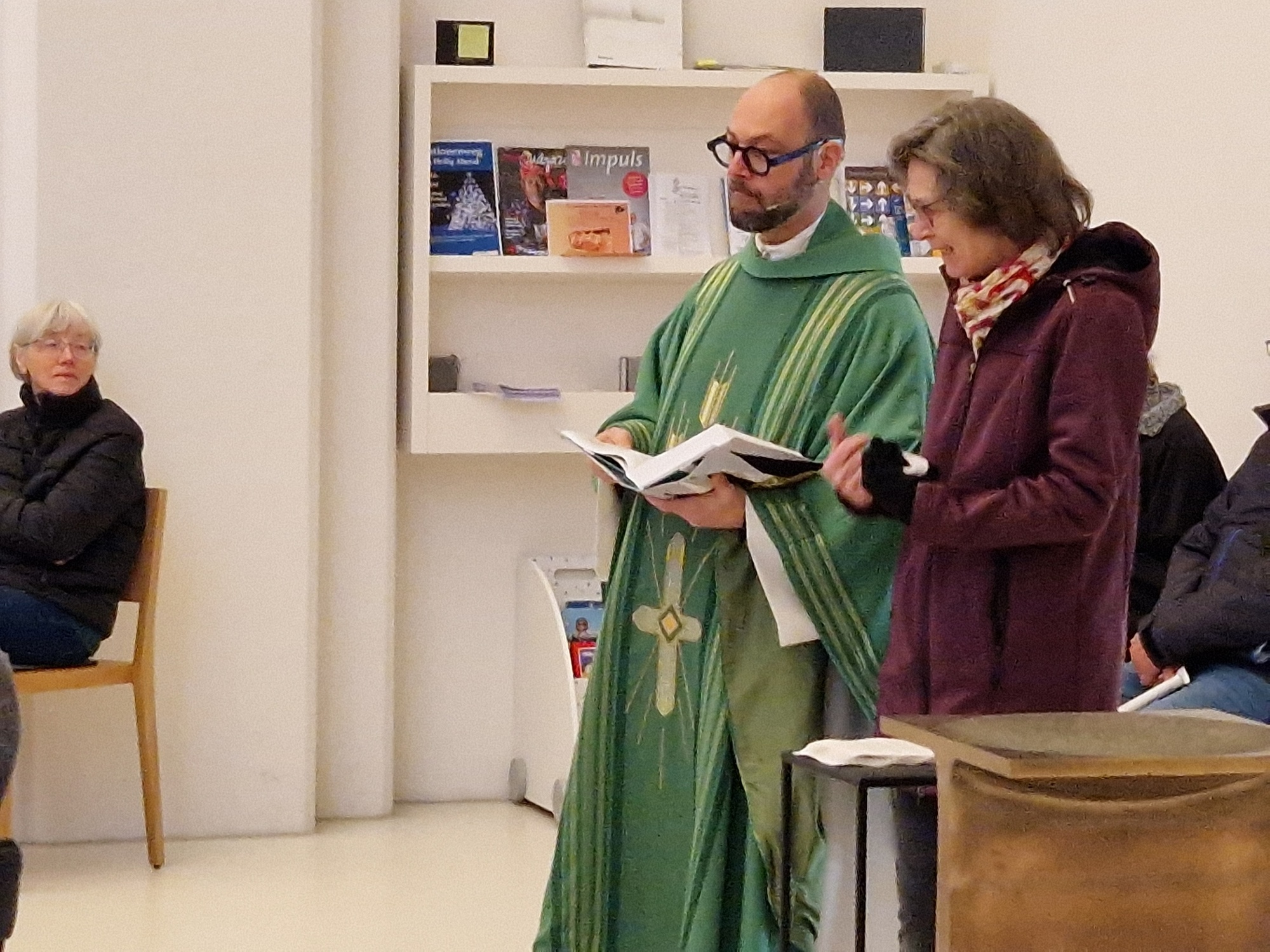 In der bekannten viertel Stunde vor dem Gottesdienst fand das 70. Gebet „Viertel vor – Schritte wagen“ von Gabi Treutlein und Ingrid Baumann statt. Kritische, aber auch mutmachende Gedanken zu Reformbedarf der katholischen Kirche wurden zum Nachdenken und Mitbeten angeboten. Die bemerkenswert lange Wegstrecke dieser Gebetsform findet ein vorläufiges Ende. Das Gebet wird in anderer Form fortgesetzt.
