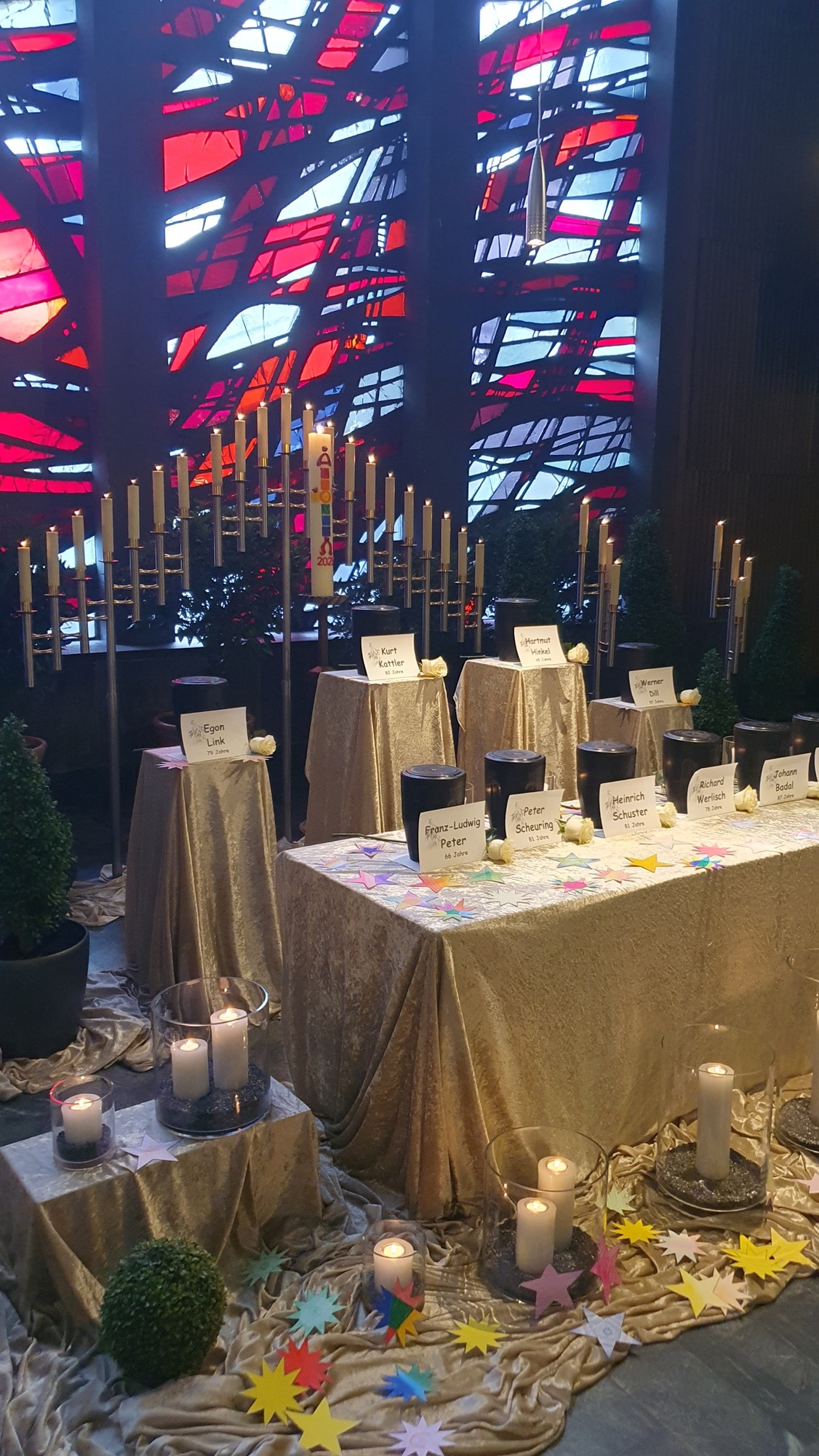 Ein gewöhnlicher Dienstagvormittag im Oktober, so scheint es. Nieselregen und parkplatzsuchende Autofahrer. In der Friedhofstraße dunkel gekleidete Menschen, die dem Eingang des Hauptfriedhofs zustreben. In der Aussegnungshalle zündet Michals Mitarbeiterin Kerzen an. Zehn schwarze Urnen, zehn Namen, zehn weiße Rosen im Kerzenschein. Die Trauergäste nehmen still Platz. Kaum einer kennt einen. Sie trauern um die Menschen, die ohne Angehörige verstarben, allein und vergessen. Die Atmosphäre ist dicht und von spürbarer Demut. Einfühlsam lassen die Musiker erste Töne erklingen. „Ich steh‘ vor Dir mit leeren Händen, Herr…“.